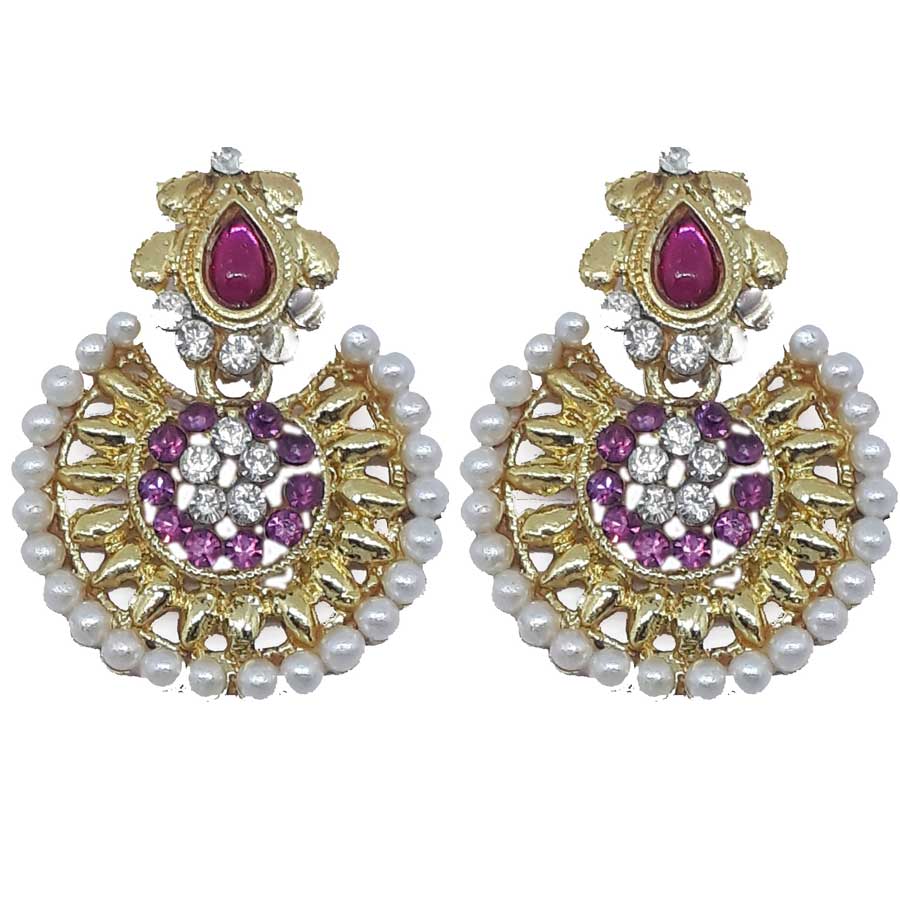 Gold Rodium Polish Purple and Violet, White and Off White color Earrings in Brass, Copper studded with Beads, Pearl