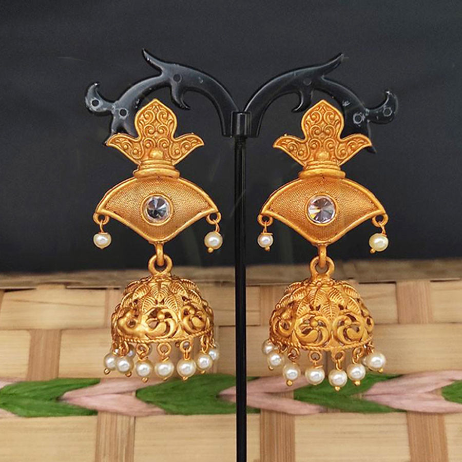 Gold Rodium Polish White and Off White color Earrings in Brass, Copper, Metal Alloy studded with Pearl