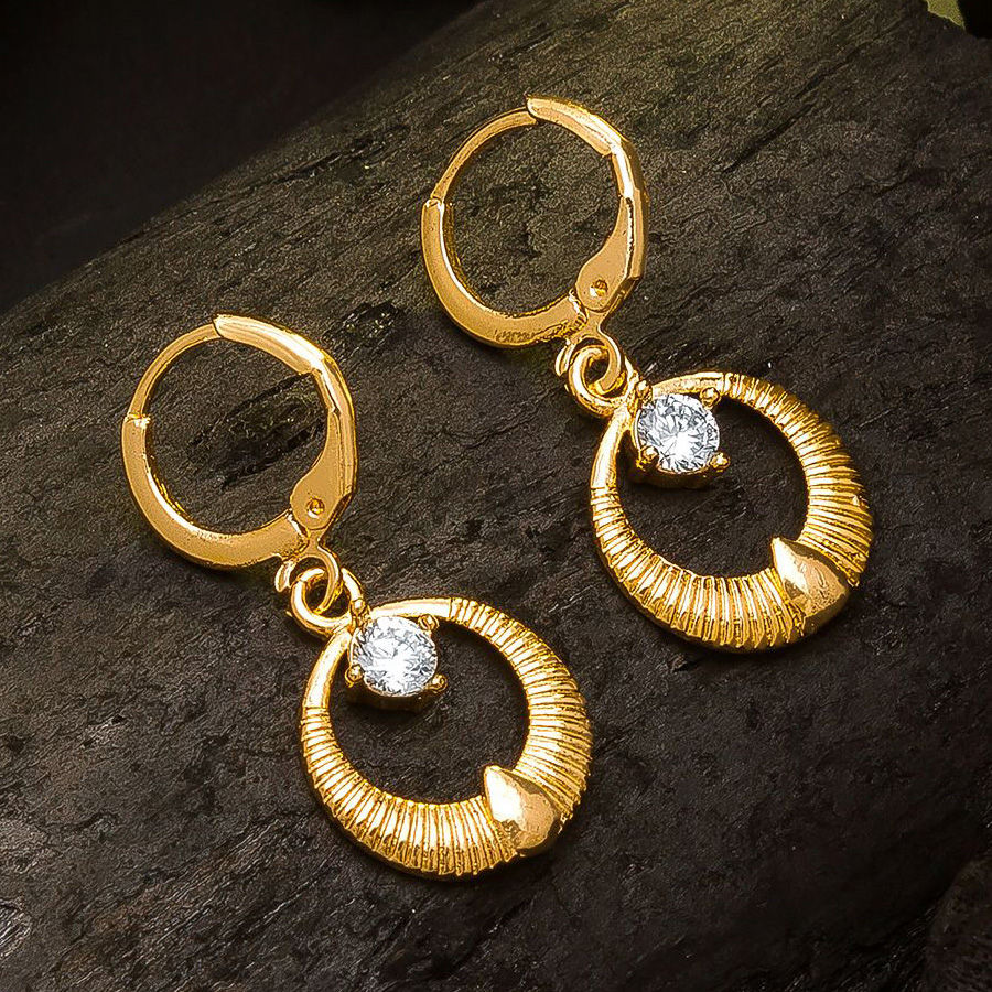 Gold Rodium Polish White and Off White color Earrings in Metal Alloy studded with Austrian diamond