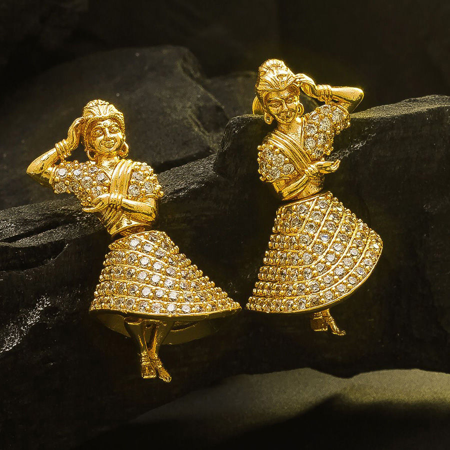Gold Rodium Polish White and Off White color Earrings in Metal Alloy studded with Austrian diamond