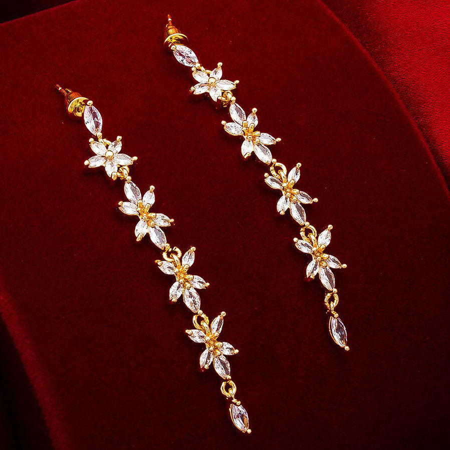 Gold Rodium Polish White and Off White color Earrings in Metal Alloy studded with Austrian diamond
