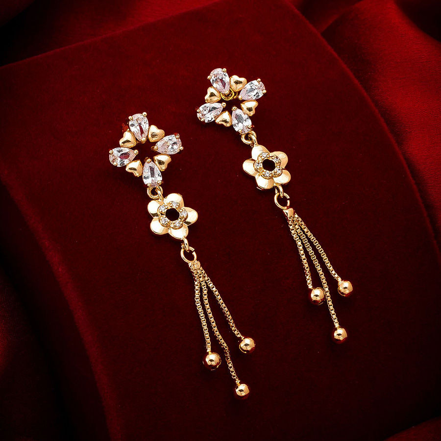 Gold Rodium Polish White and Off White Earrings in Metal Alloy with Austrian diamond