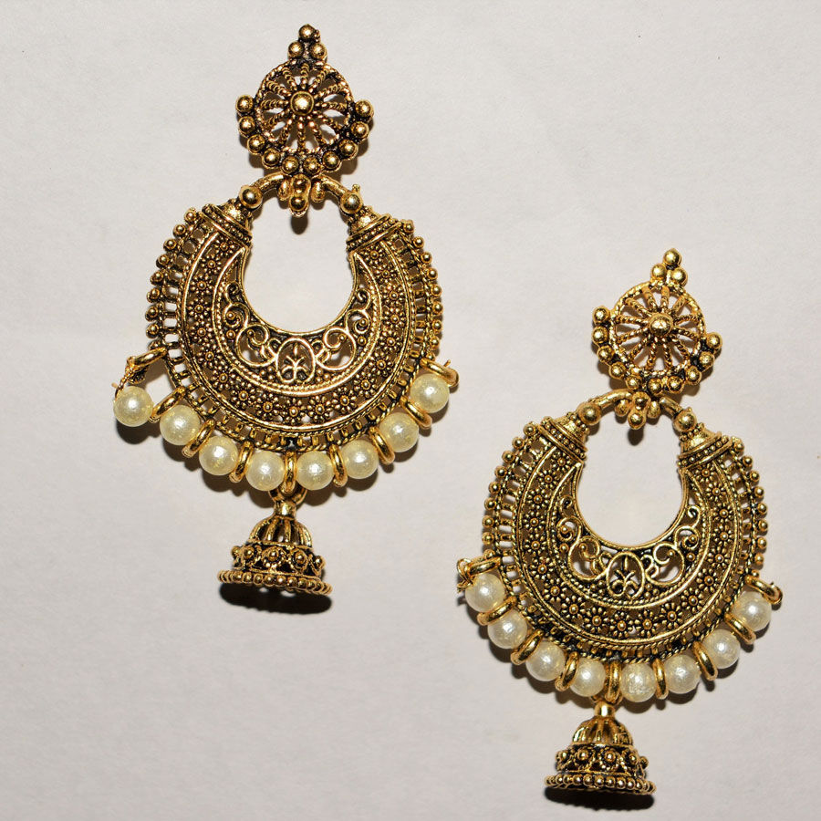 Gold Rodium Polish White and Off White color Earrings in Metal Alloy studded with Pearl