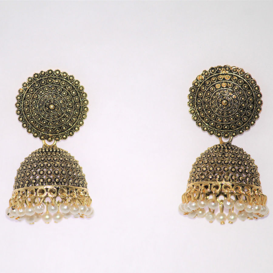 Gold Rodium Polish White and Off White color Earrings in Metal Alloy studded with Pearl