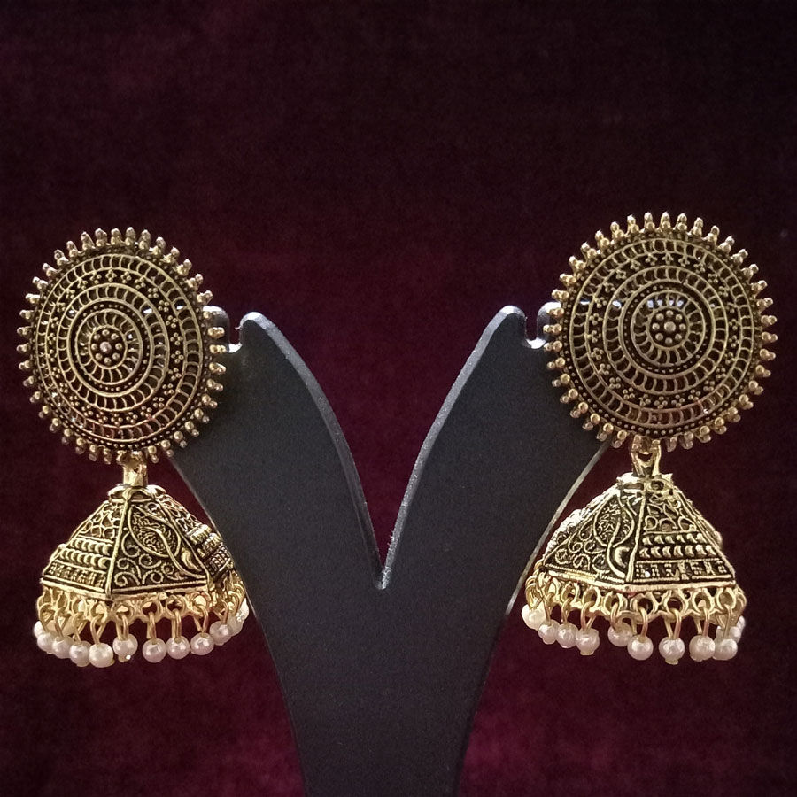 Gold Rodium Polish White and Off White color Earrings in Metal Alloy studded with Pearl