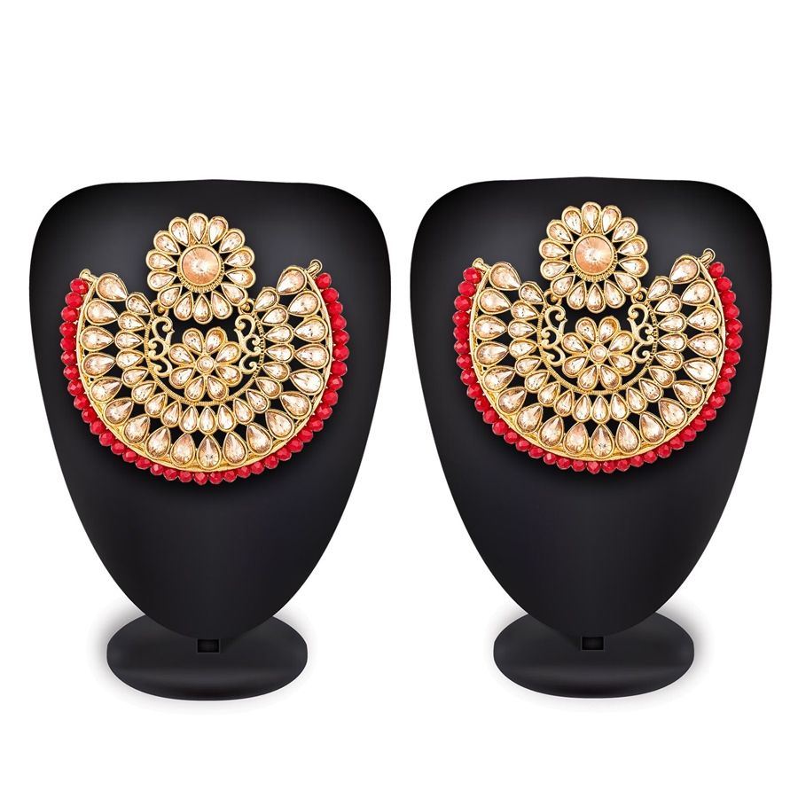 Gold Rodium Polish Beige and Brown, Red and Maroon color Earrings in Metal Alloy studded with Austrian diamond, Pearl