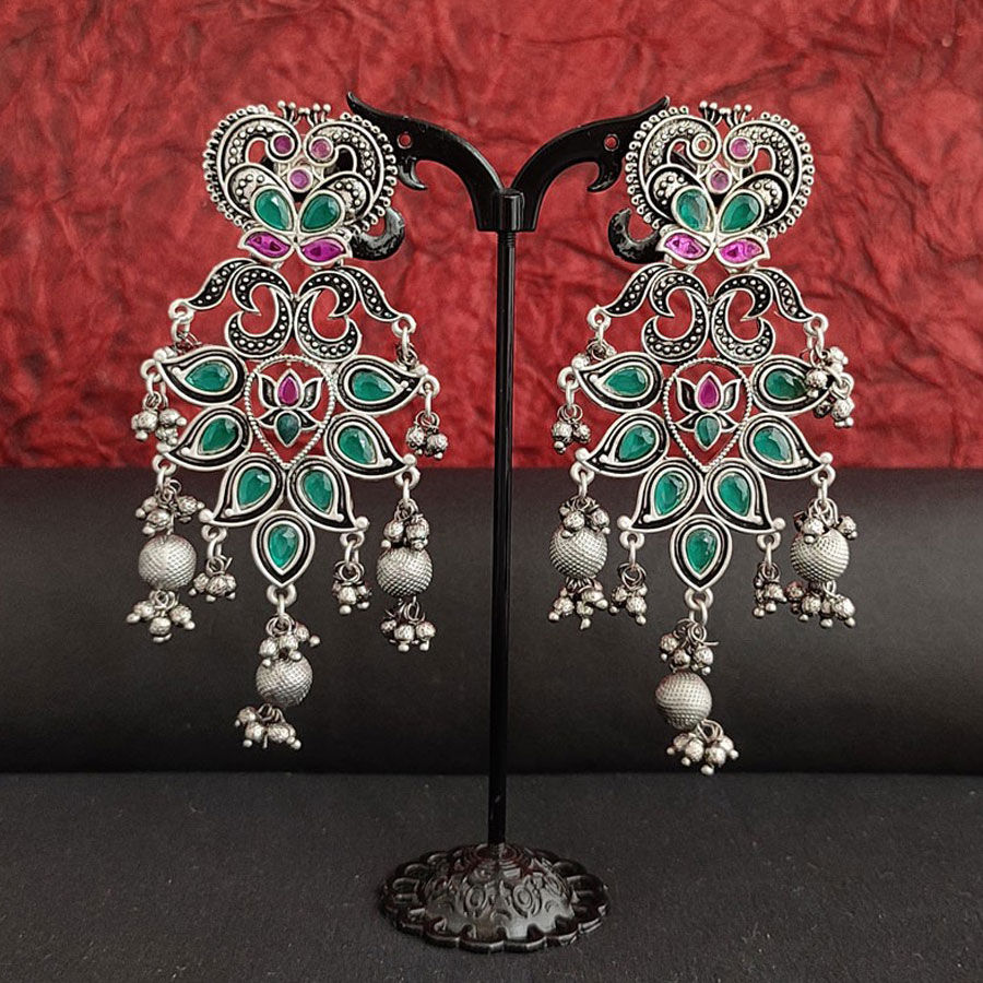 Silver Rodium Polish Green color Earrings in Brass, Copper, Metal Alloy studded with CZ Diamond, Pearl