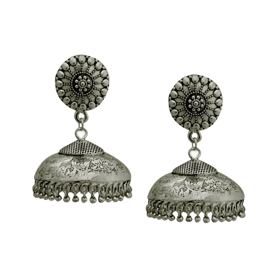 Silver Rodium Polish Oxidized Silver color Earrings in Brass studded with Beads