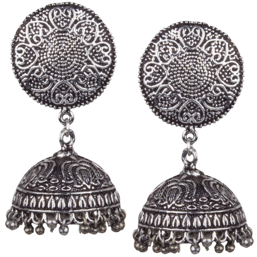 Silver Rodium Polish Oxidized Silver color Earrings in Brass studded with Beads