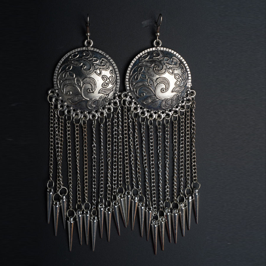 Silver Rodium Polish Oxidized Silver color Earrings in Metal Alloy studded with Beads