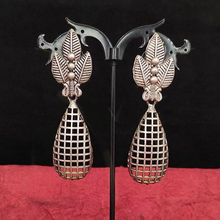 Silver Rodium Polish Oxidized Silver color Earrings in Brass, Copper, Metal Alloy studded with Beads