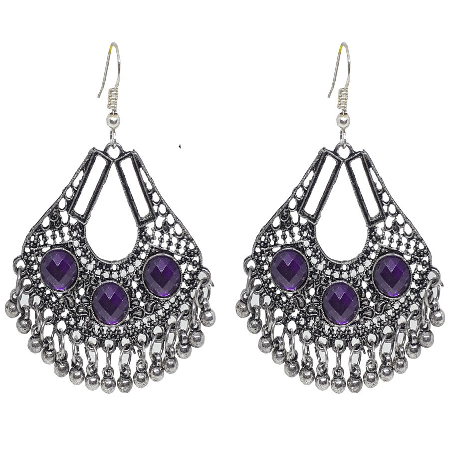 Silver Rodium Polish Purple and Violet color Earrings in Brass studded with Pearl