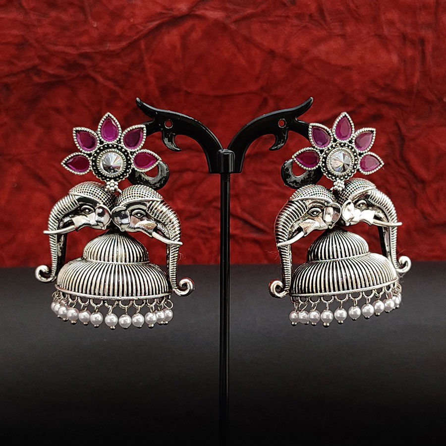 Silver Rodium Polish Red and Maroon color Earrings in Brass, Copper, Metal Alloy studded with CZ Diamond, Pearl