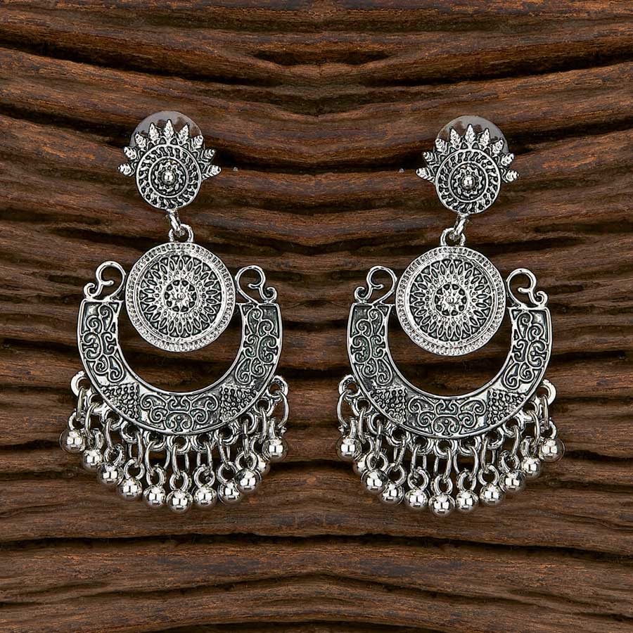 Silver Rodium Polish Silver Earrings in Metal Alloy with Beads