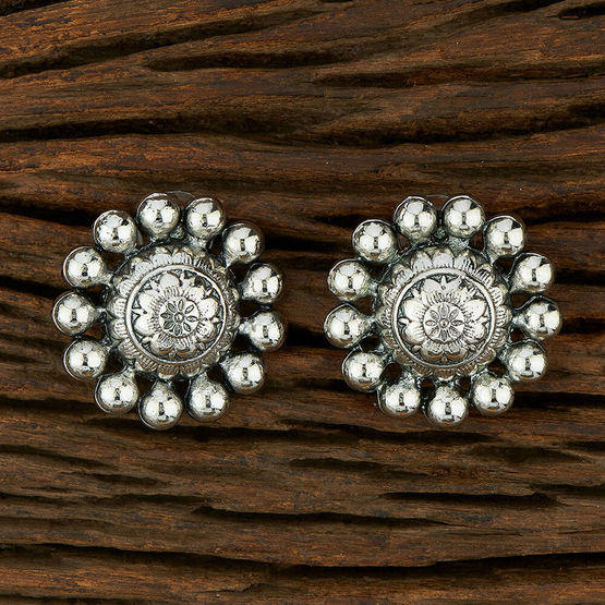 Silver Rodium Polish Silver color Earrings in Metal Alloy studded with Beads