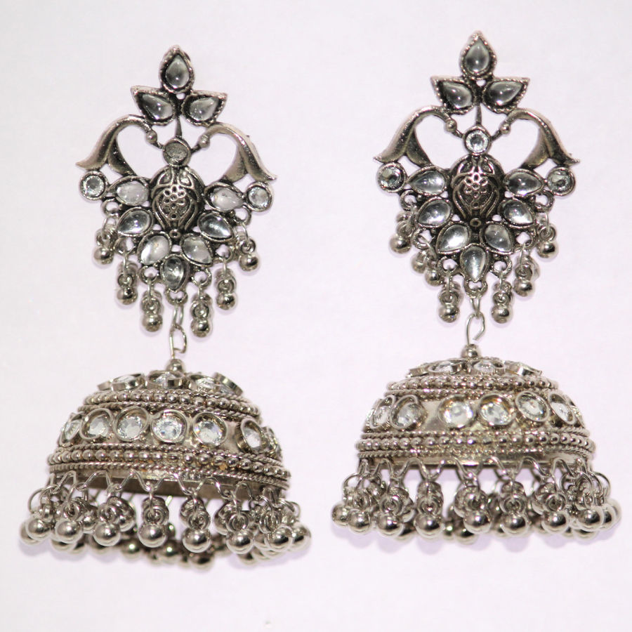 Silver Rodium Polish Silver color Earrings in Metal Alloy studded with CZ Diamond