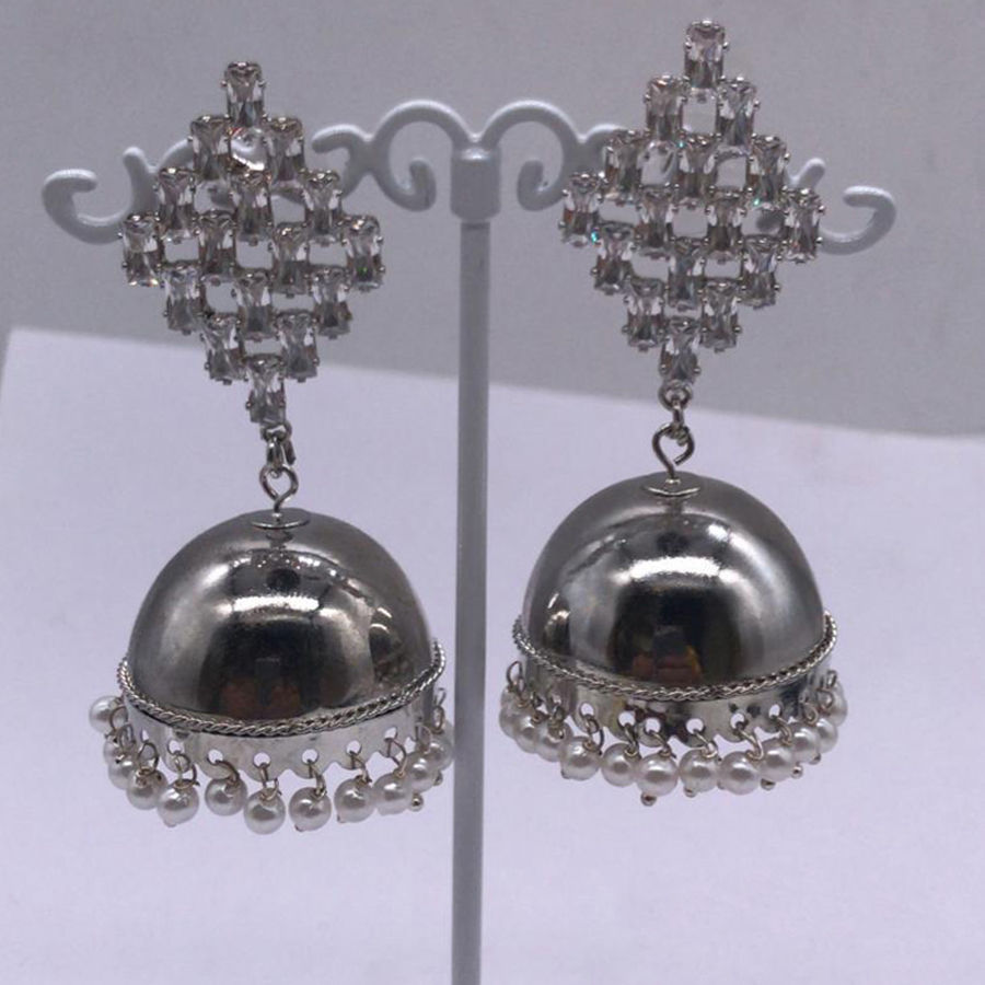 Silver Rodium Polish Silver color Earrings in Metal Alloy studded with CZ Diamond