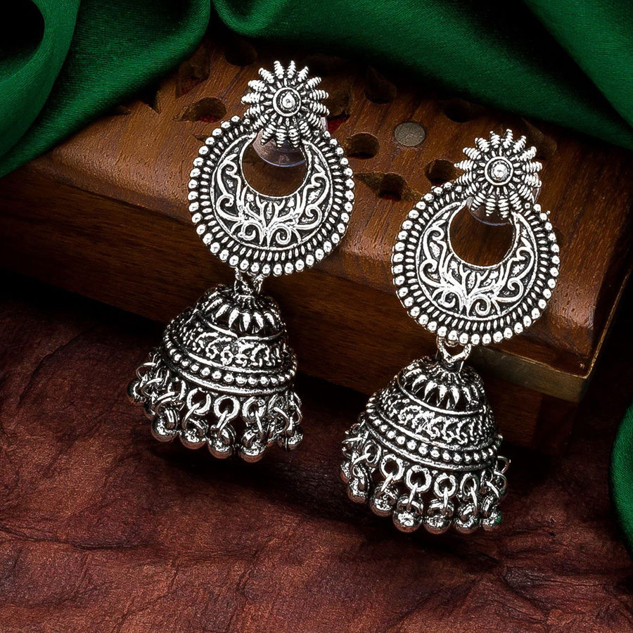 Silver Rodium Polish Silver color Earrings in Metal Alloy studded with CZ Diamond