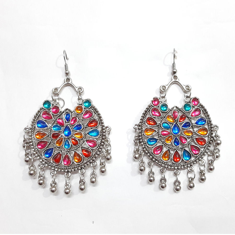 Gold Rodium Polish Multicolor Earrings in Metal Alloy with Beads