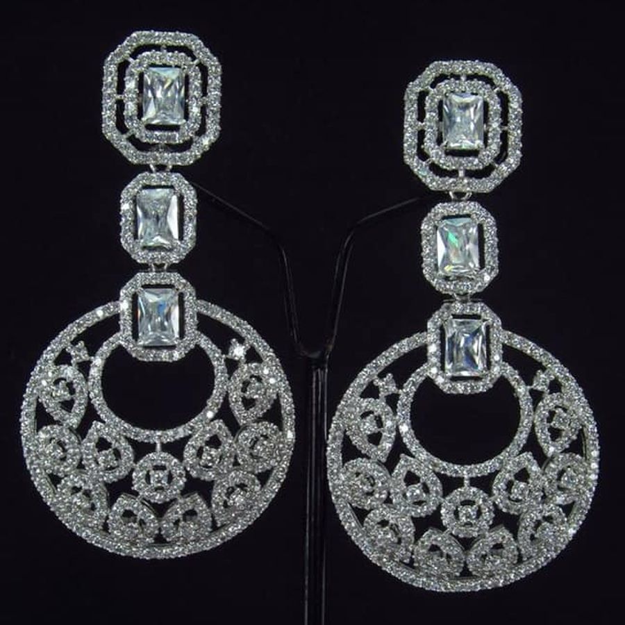 Silver Rodium Polish White and Off White color Earrings in Metal Alloy studded with CZ Diamond