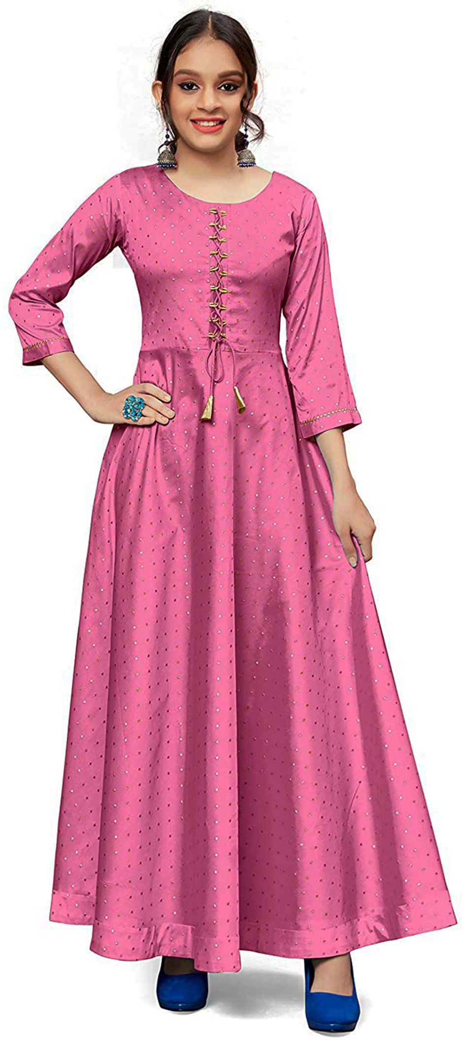 Pink and Majenta color Girls Gown in Jacquard fabric with Printed work : 1708068