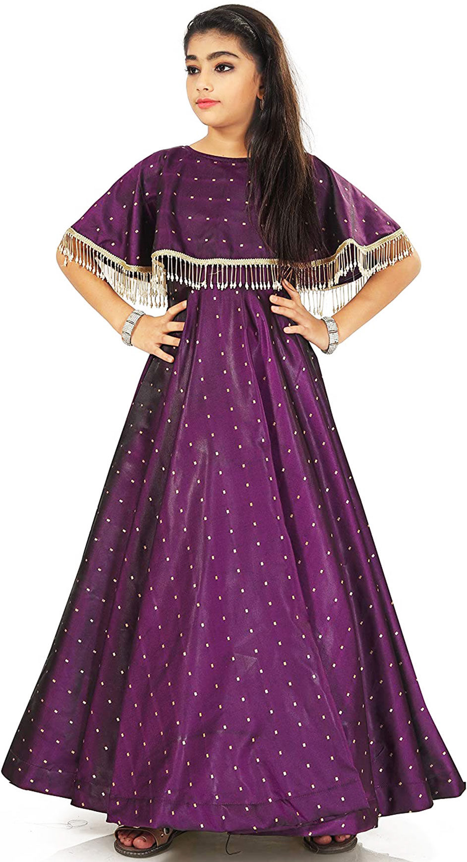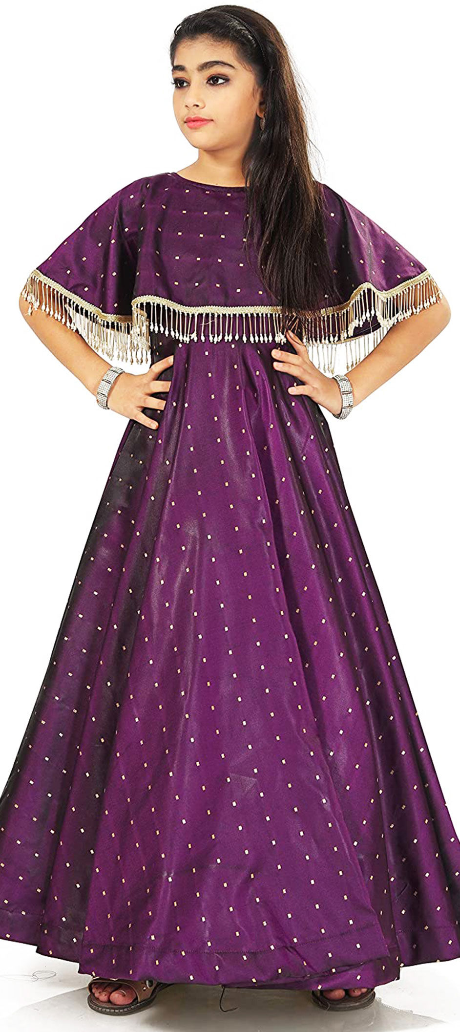 Purple and Violet color Girls Gown in Silk cotton fabric with Printed work : 1723466
