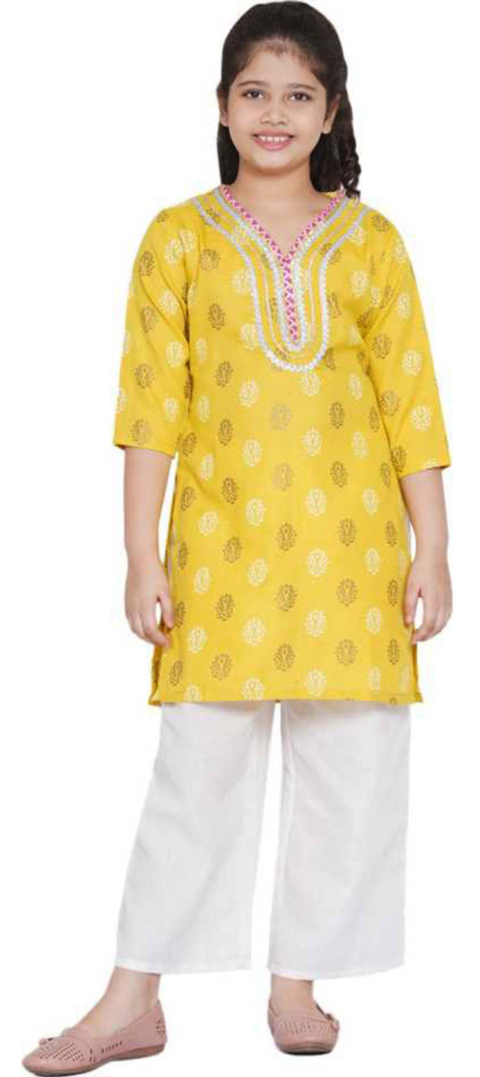 White and Off White, Yellow color Girls Top with Bottom in Blended Cotton fabric with Lace, Printed work : 1764234