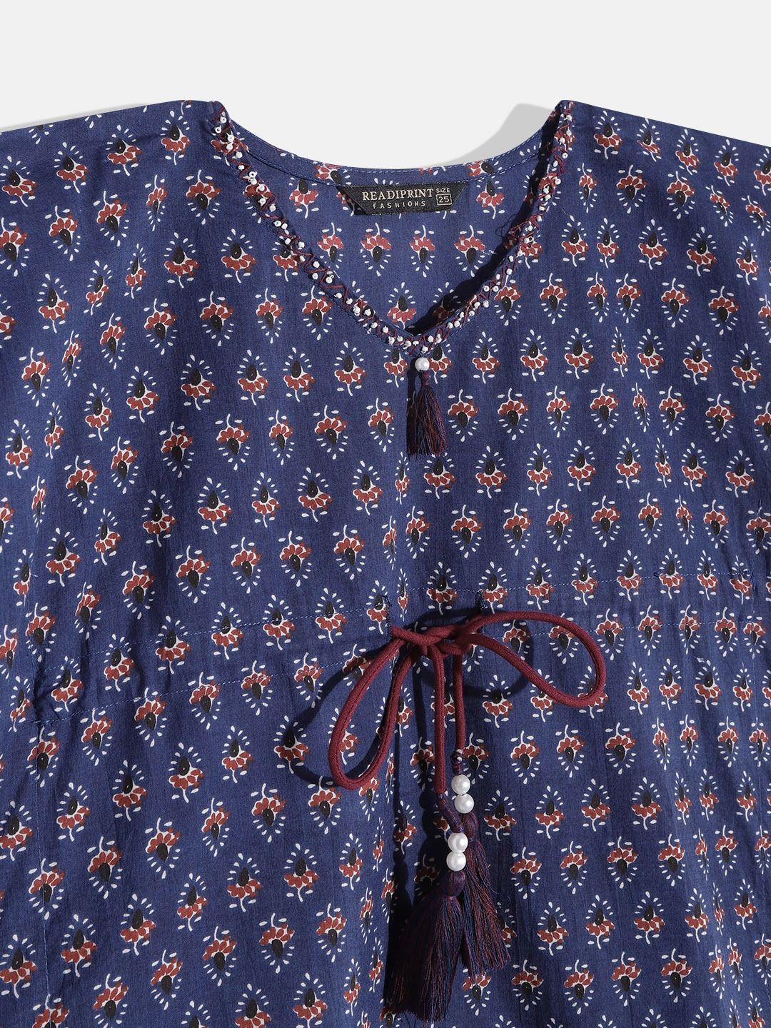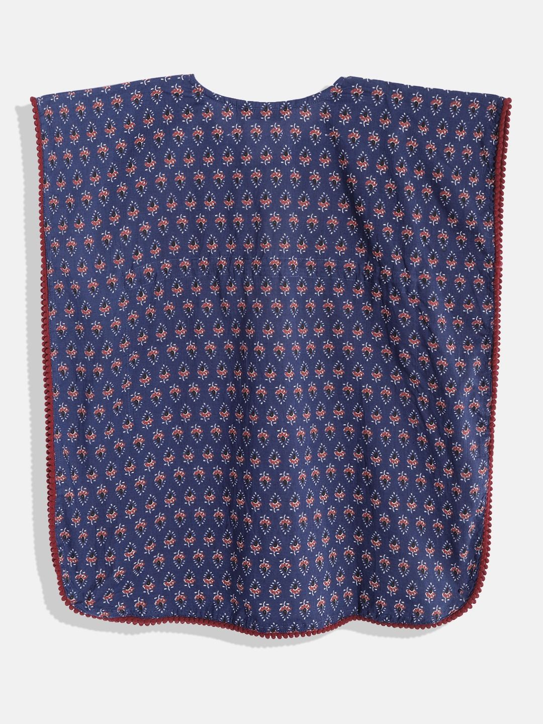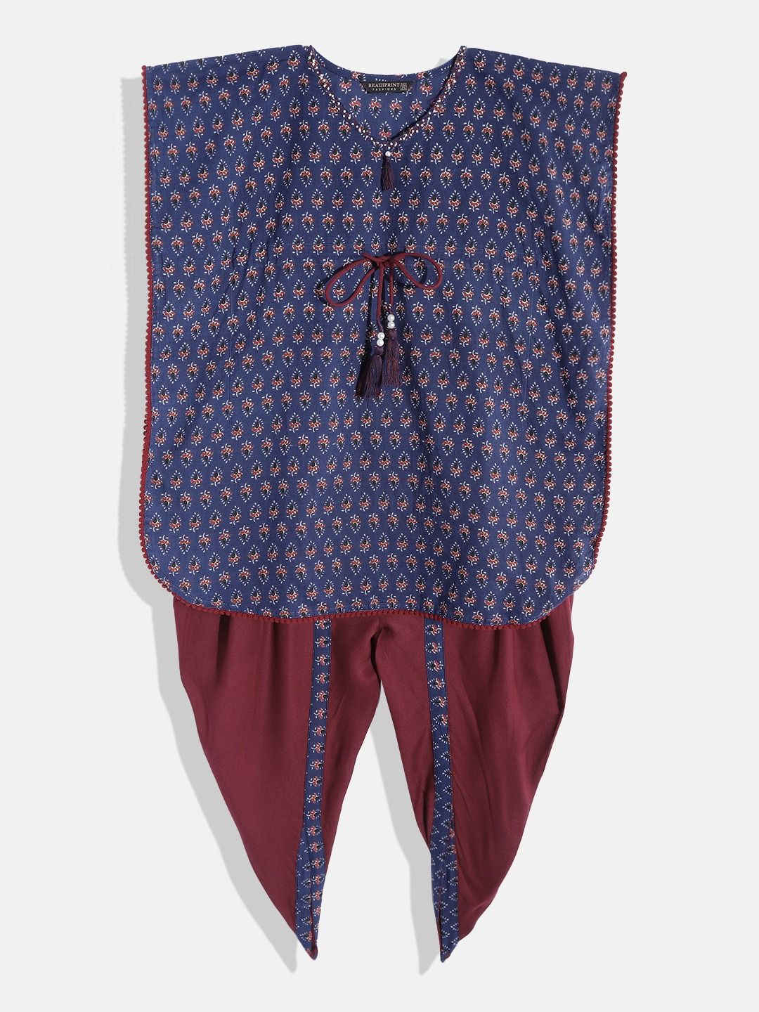 Blue, Red and Maroon color Girls Top with Bottom in Cotton fabric with Printed, Thread work