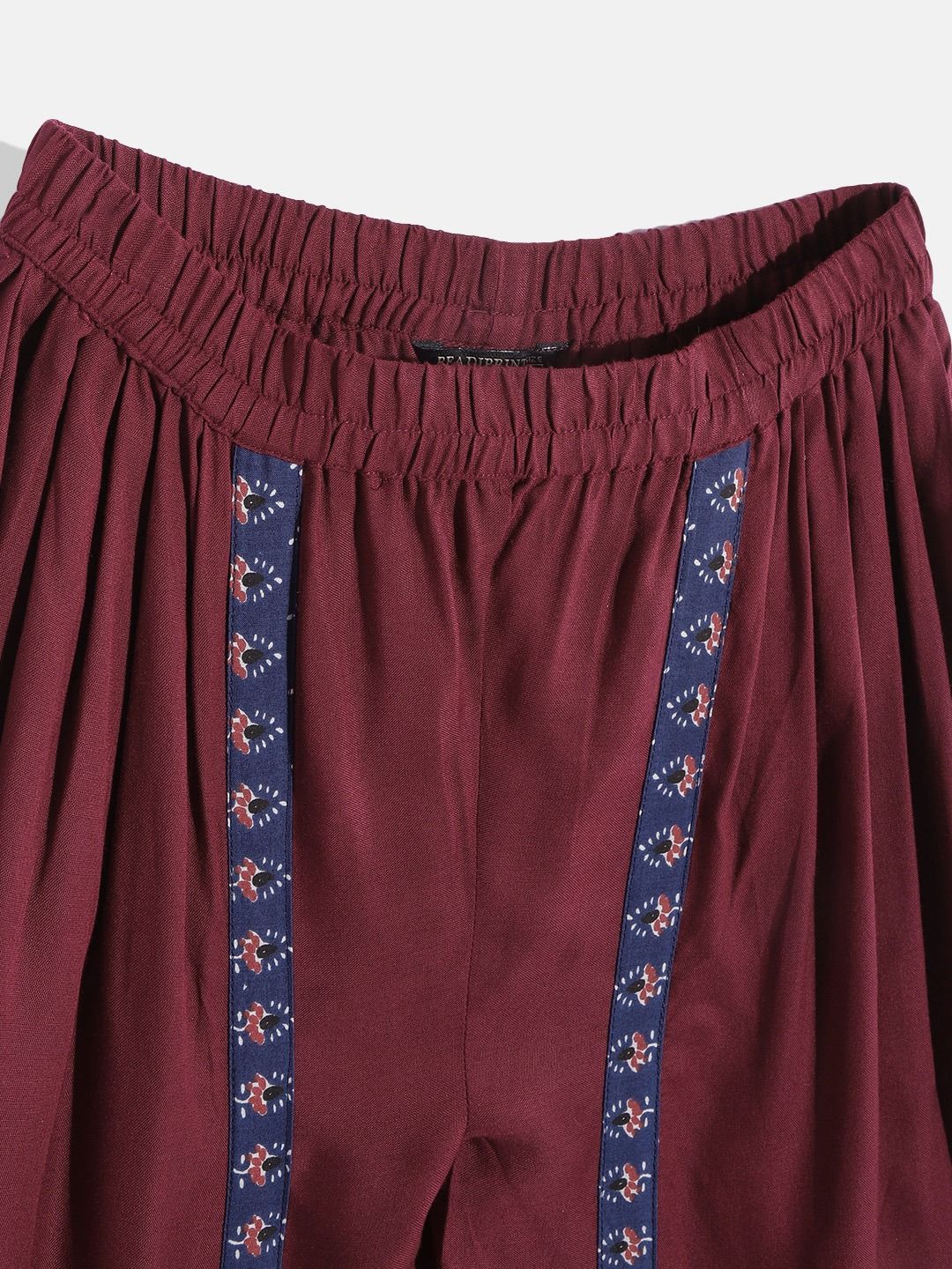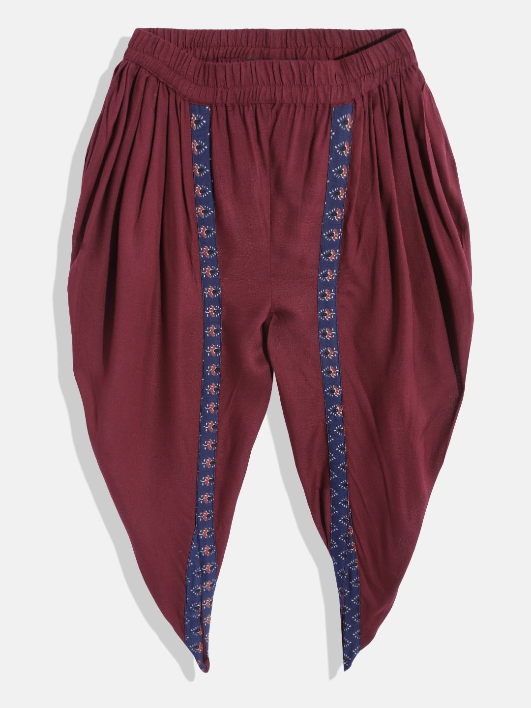 Art Silk Girls Top with Bottom in Red and Maroon with Printed work