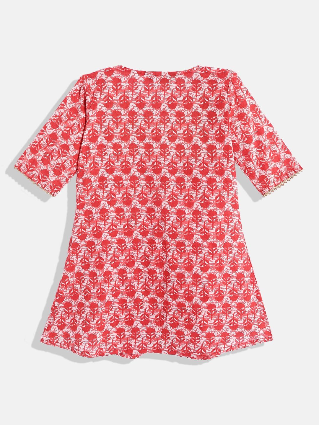 Art Silk Girls Top with Bottom in Red and Maroon with Printed work