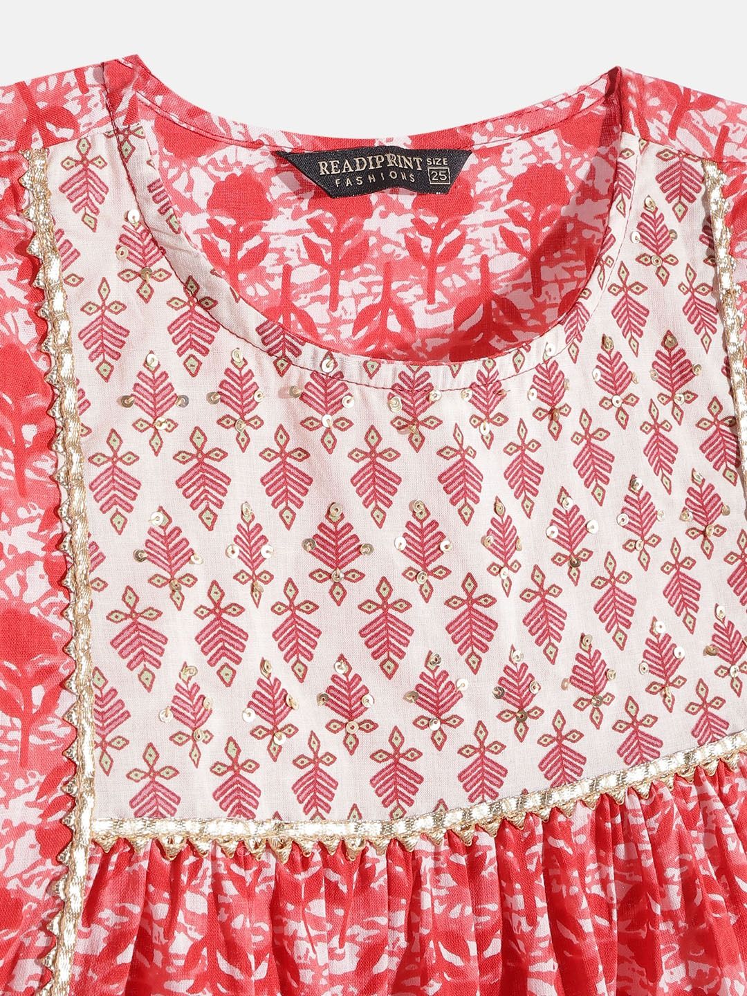 Multicolor color Girls Top with Bottom in Cotton fabric with Gota Patti, Printed, Sequence work