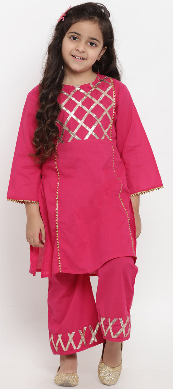 Pink and Majenta color Girls Top with Bottom in Cotton fabric with Gota Patti work : 1689813