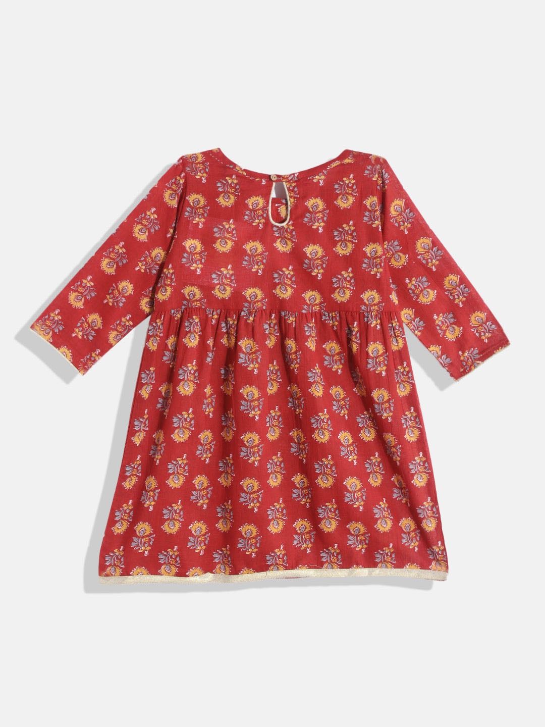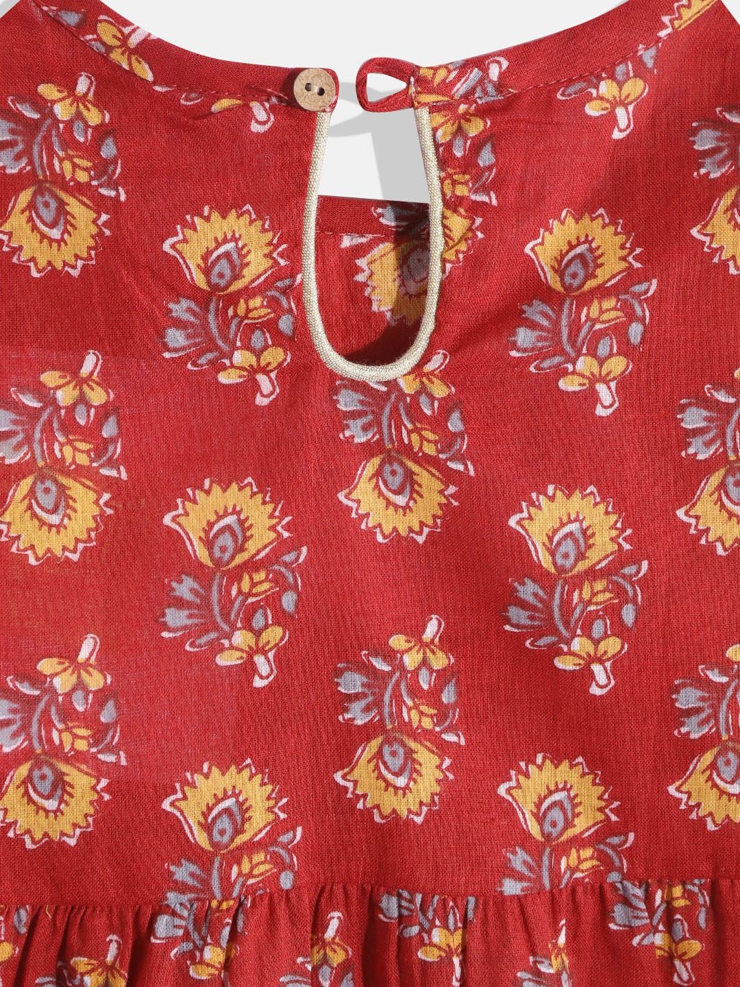 Art Silk Girls Top with Bottom in Red and Maroon with Printed work