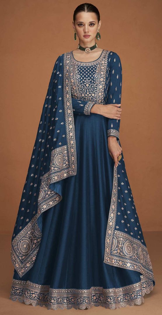 Blue color Gown in Art Silk fabric with Embroidered, Sequence, Thread, Zari work
