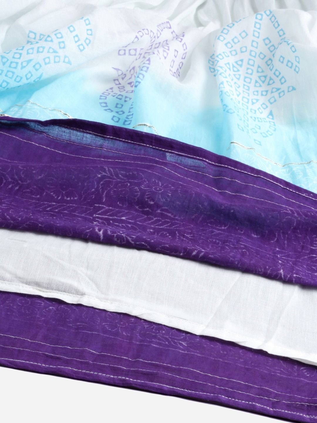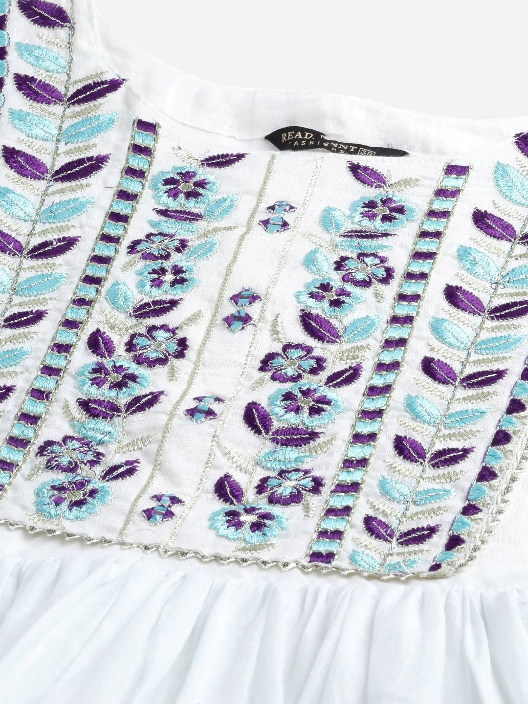 White and Off White color Gown in Cotton fabric with Embroidered, Mirror, Printed, Thread work