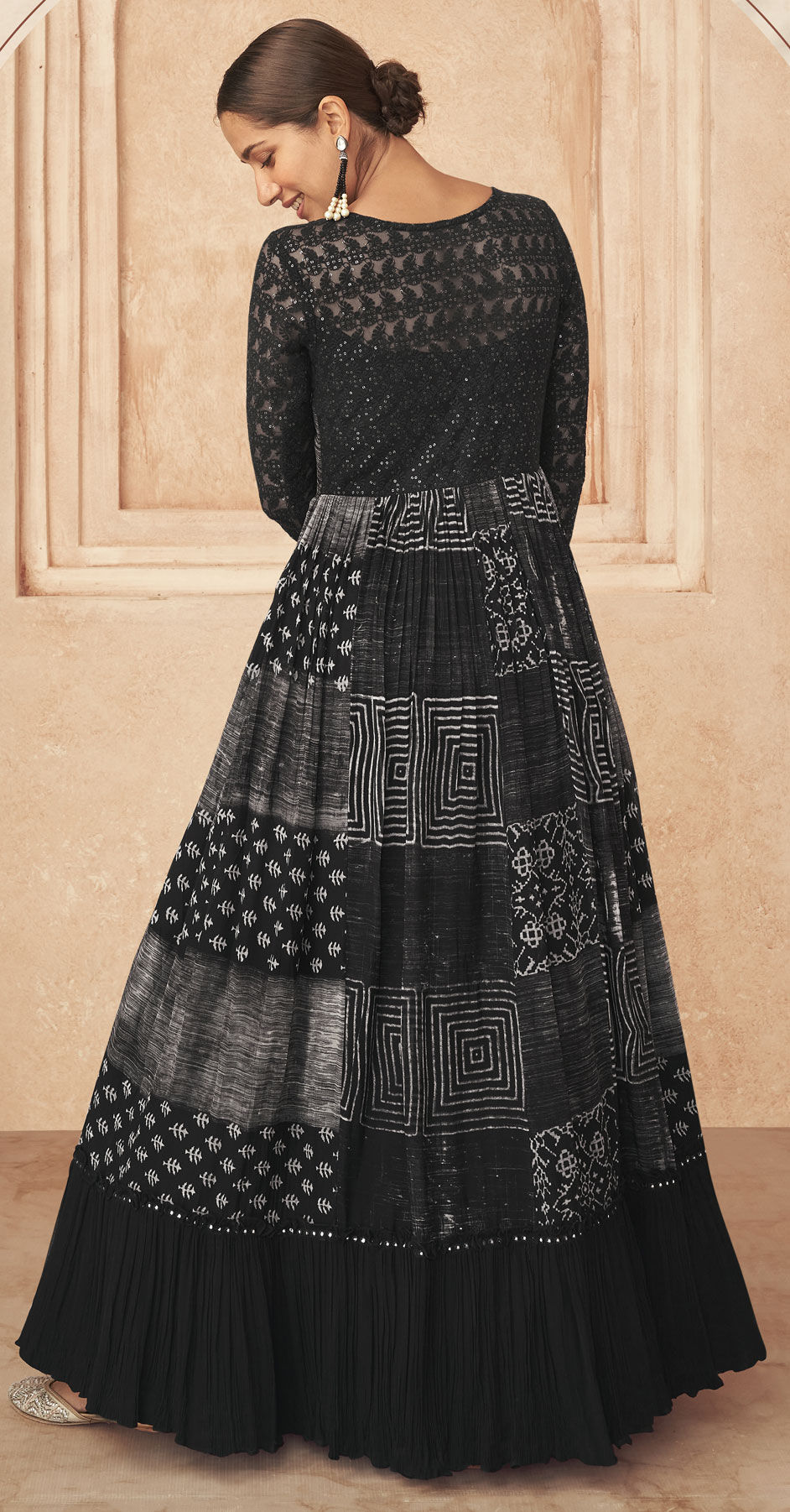 Black and Grey color Gown in Georgette fabric with Embroidered, Sequence, Thread work