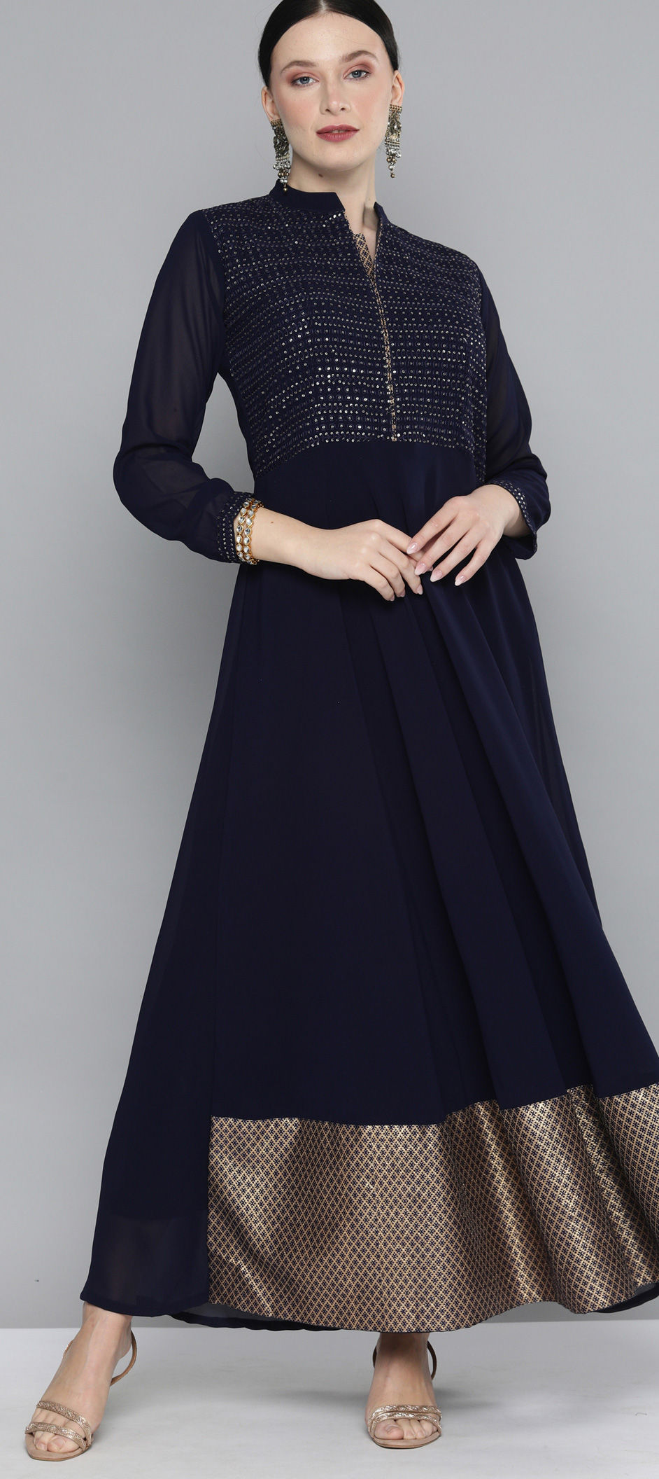 Blue color Gown in Georgette fabric with Embroidered, Sequence, Thread work