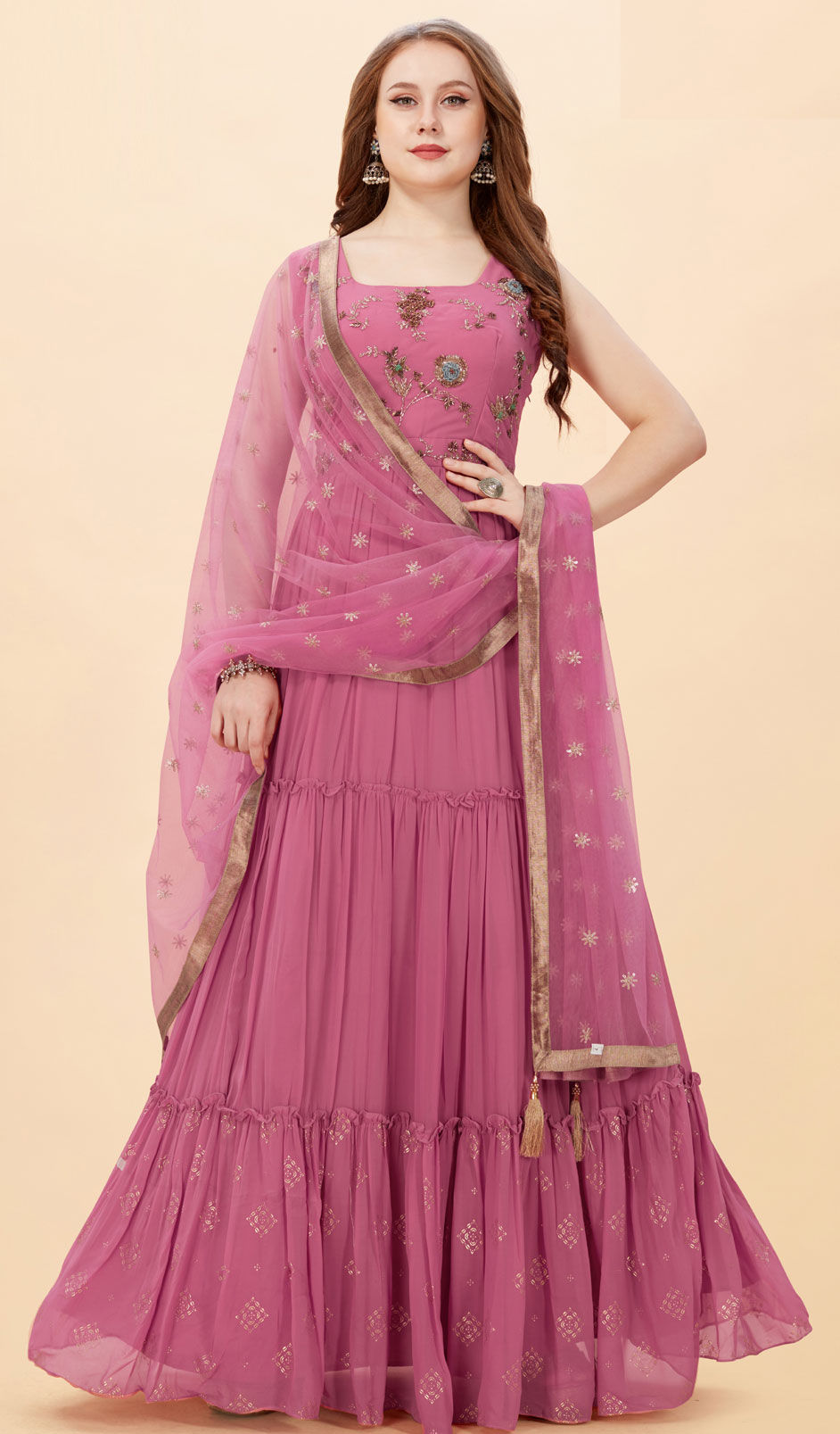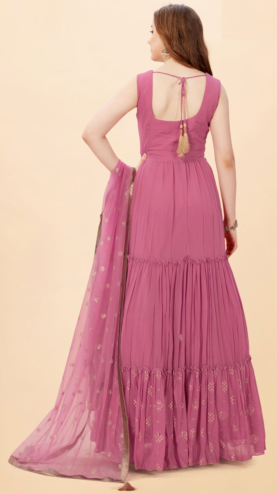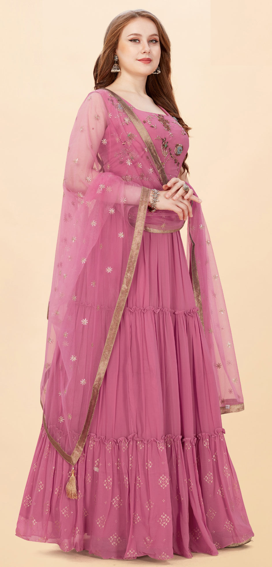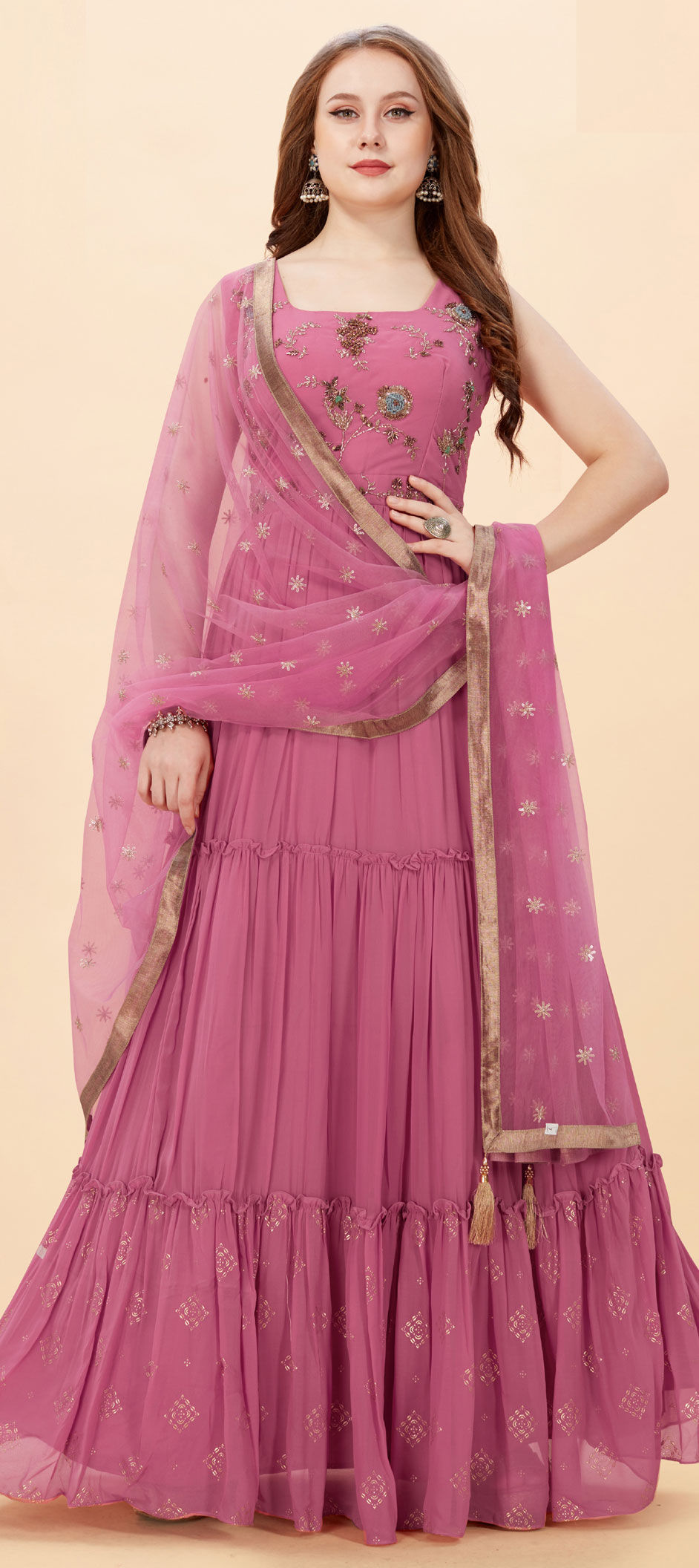 Pink and Majenta color Gown in Georgette fabric with Bugle Beads, Cut Dana, Sequence work