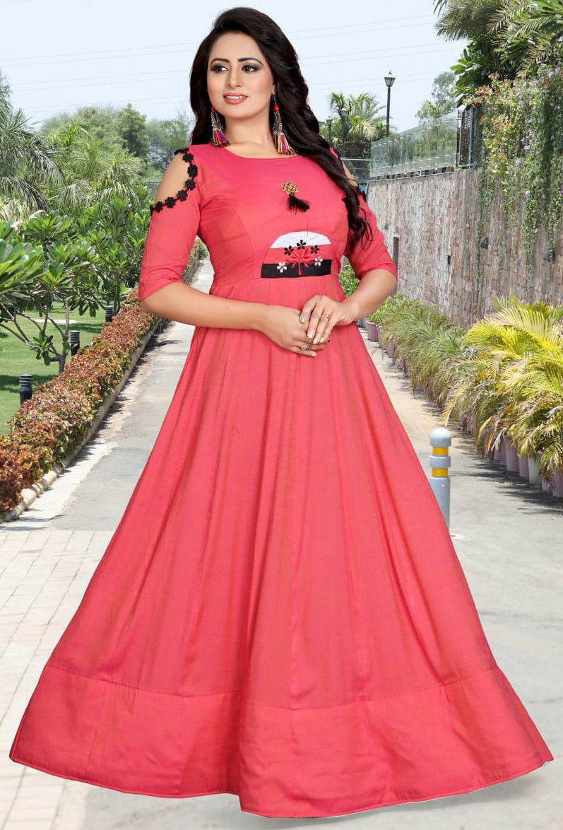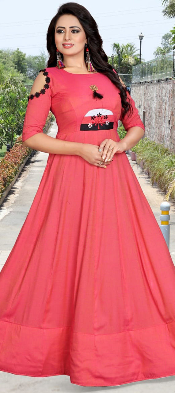 Pink and Majenta color Gown in Rayon fabric with Embroidered, Thread work