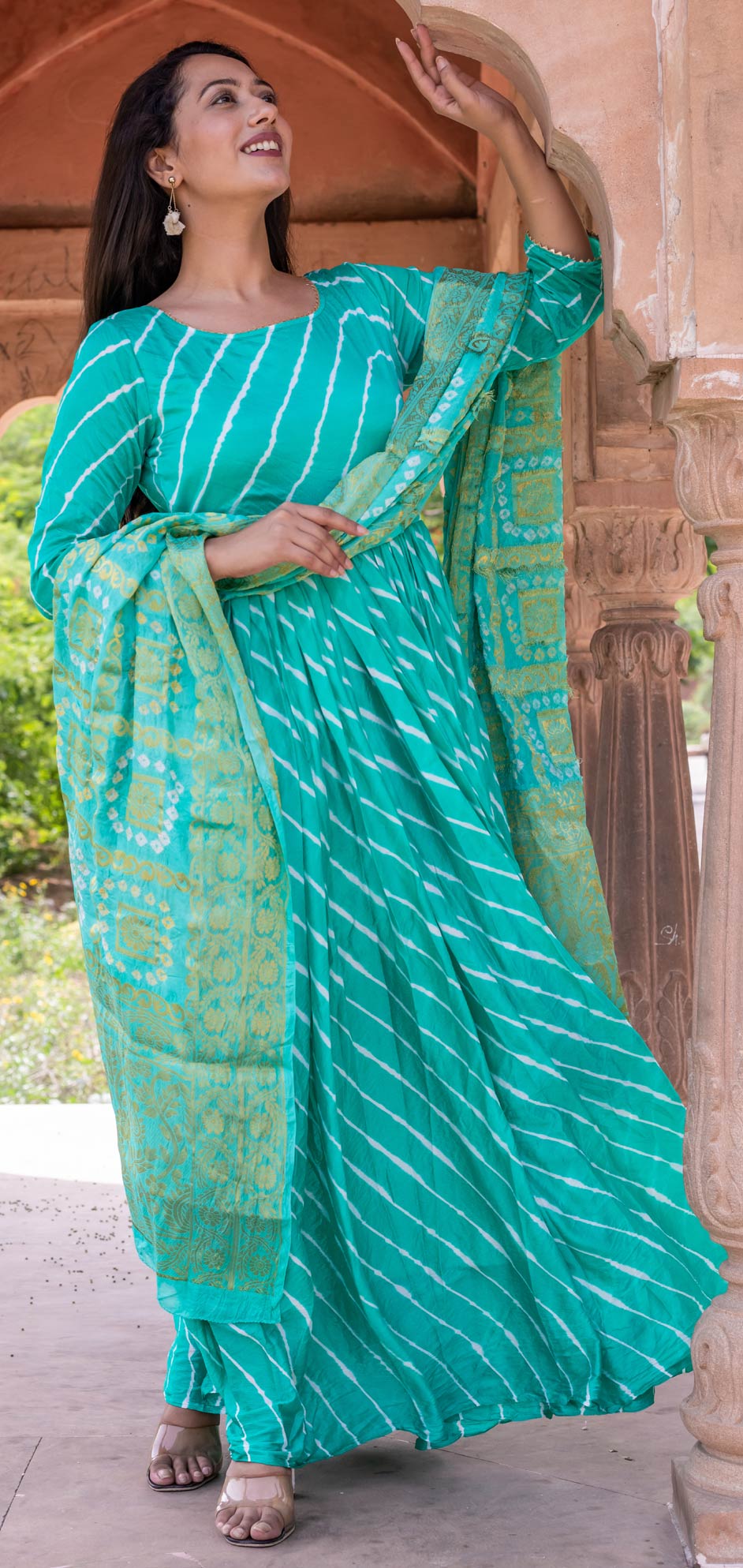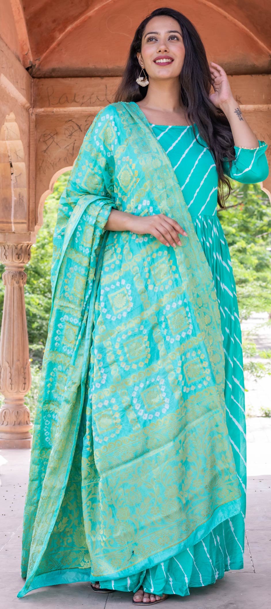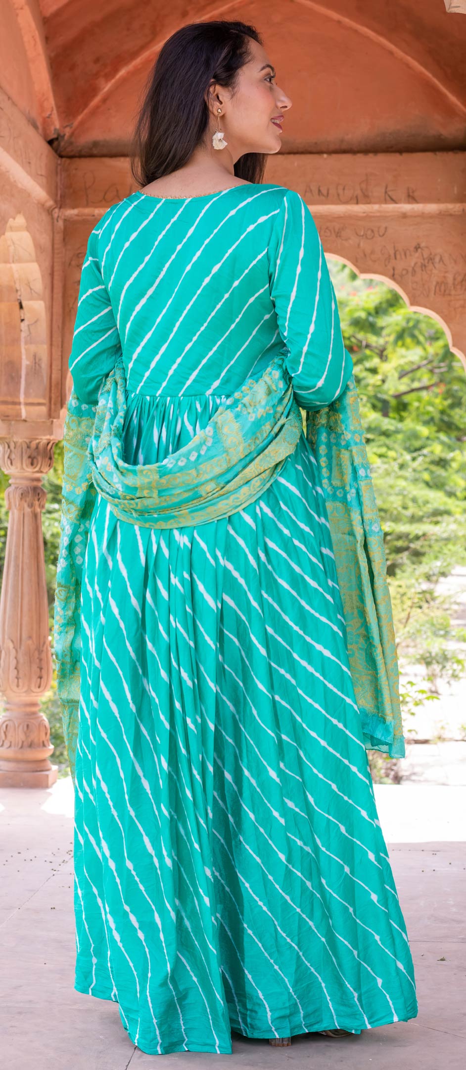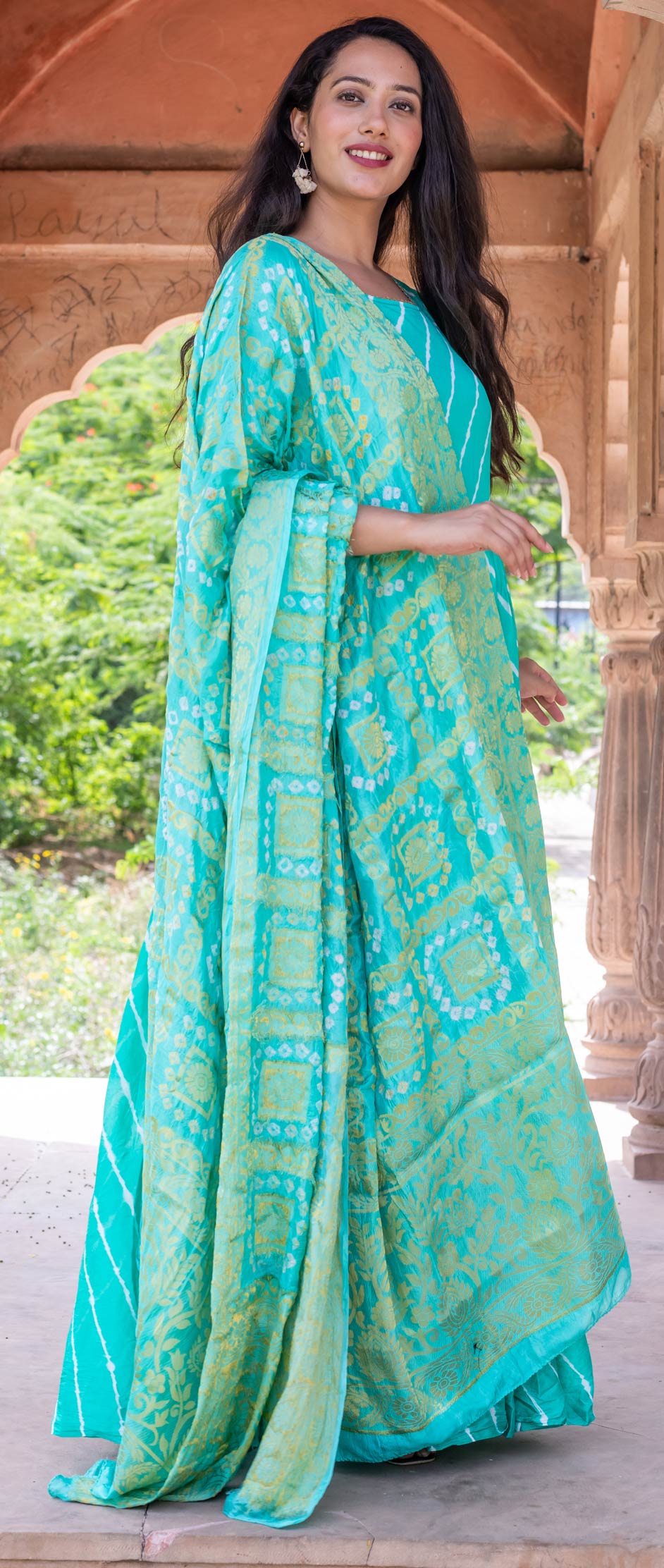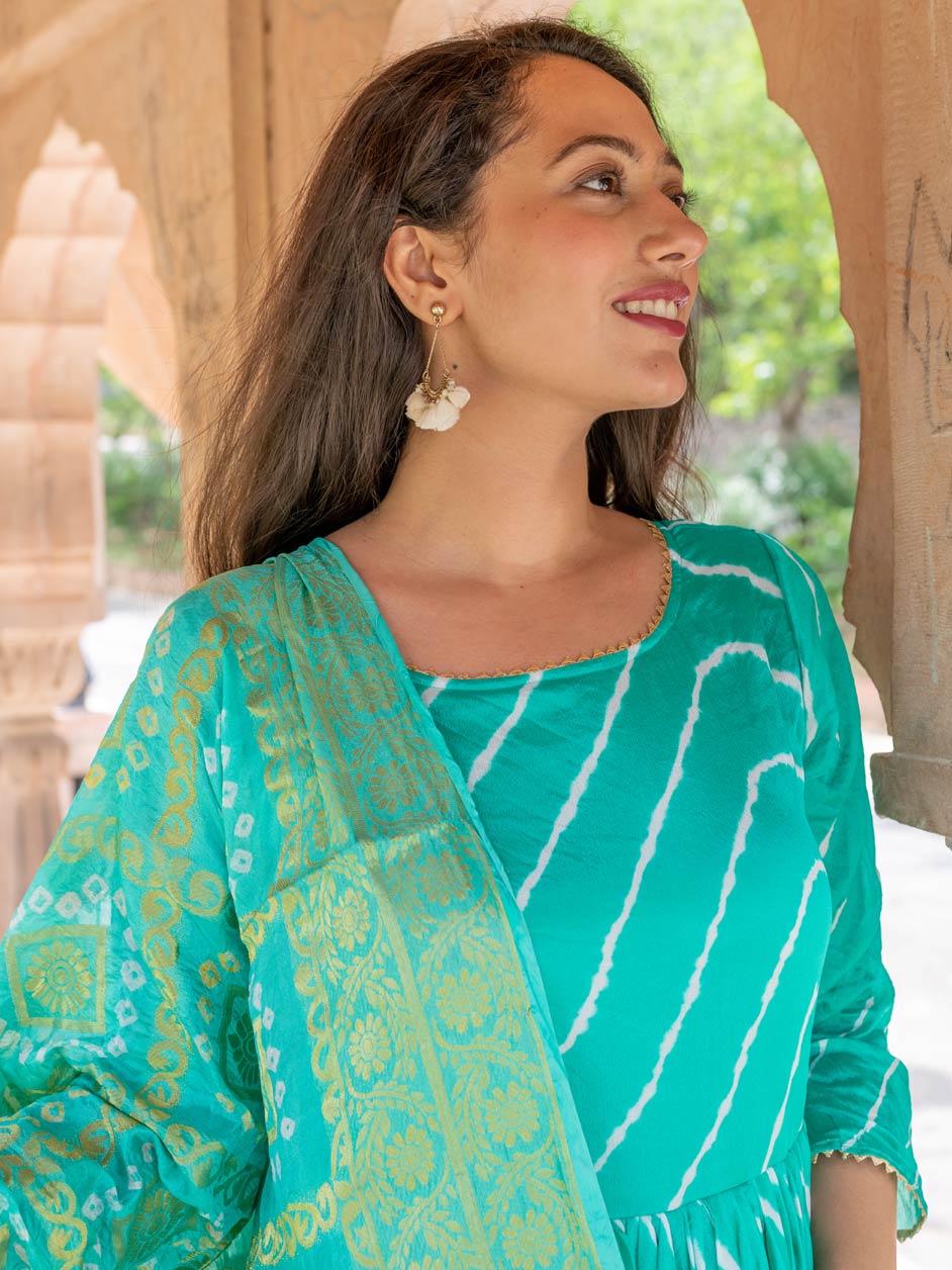 in Blue with Lehariya work