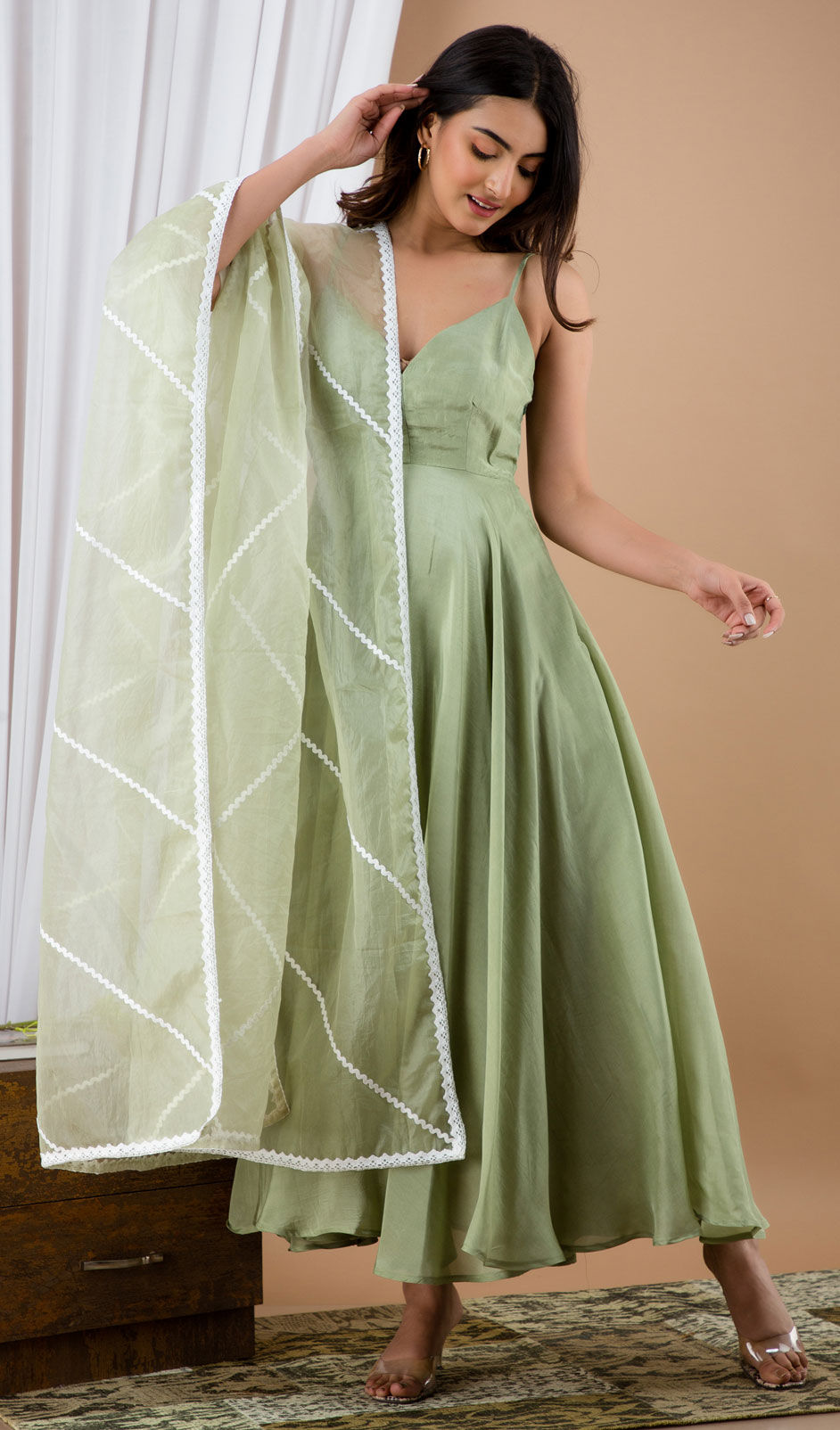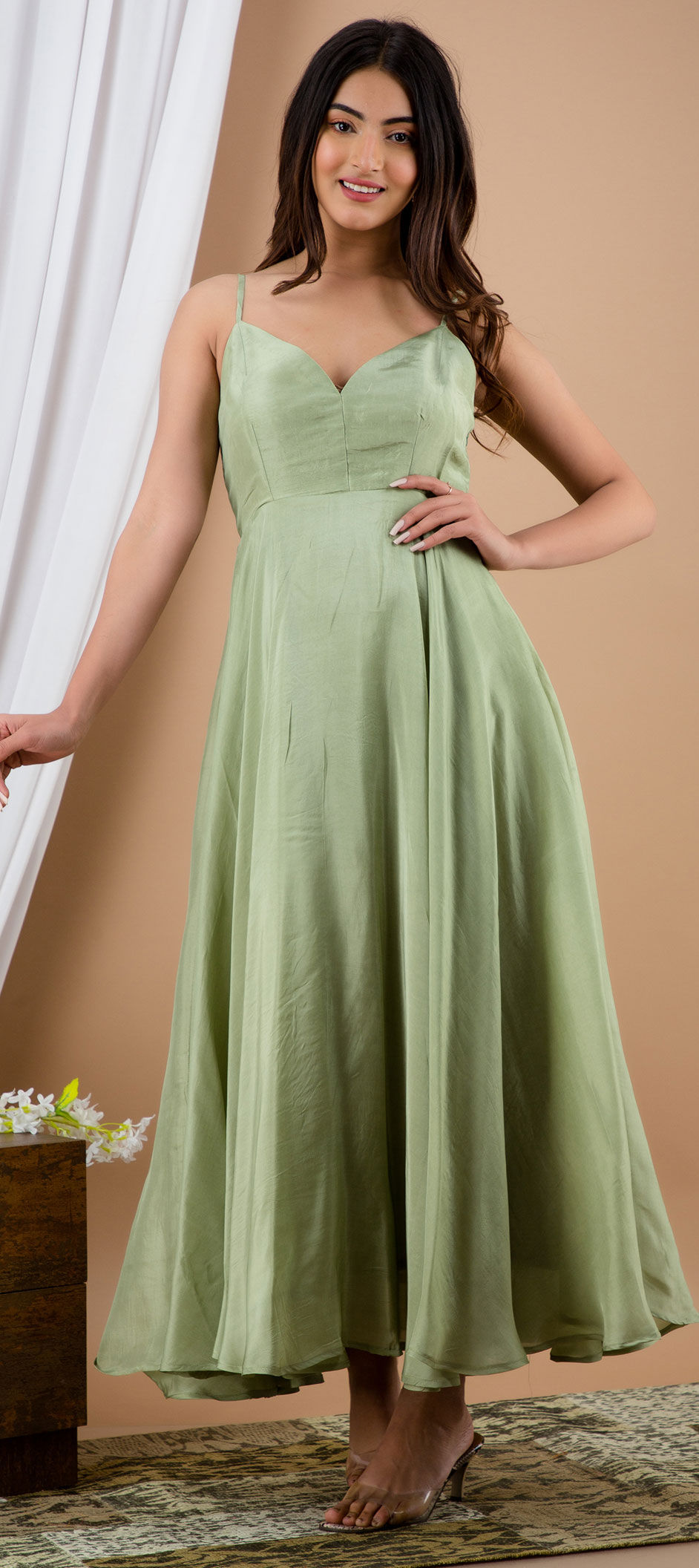 Uppada Silk Party Wear Gown in Orange with Thread work