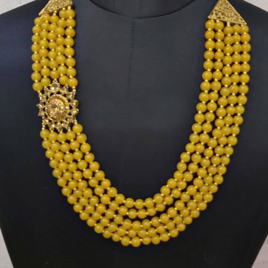 Gold Rodium Polish Yellow color Groom Necklace in Metal Alloy studded with CZ Diamond, Pearl