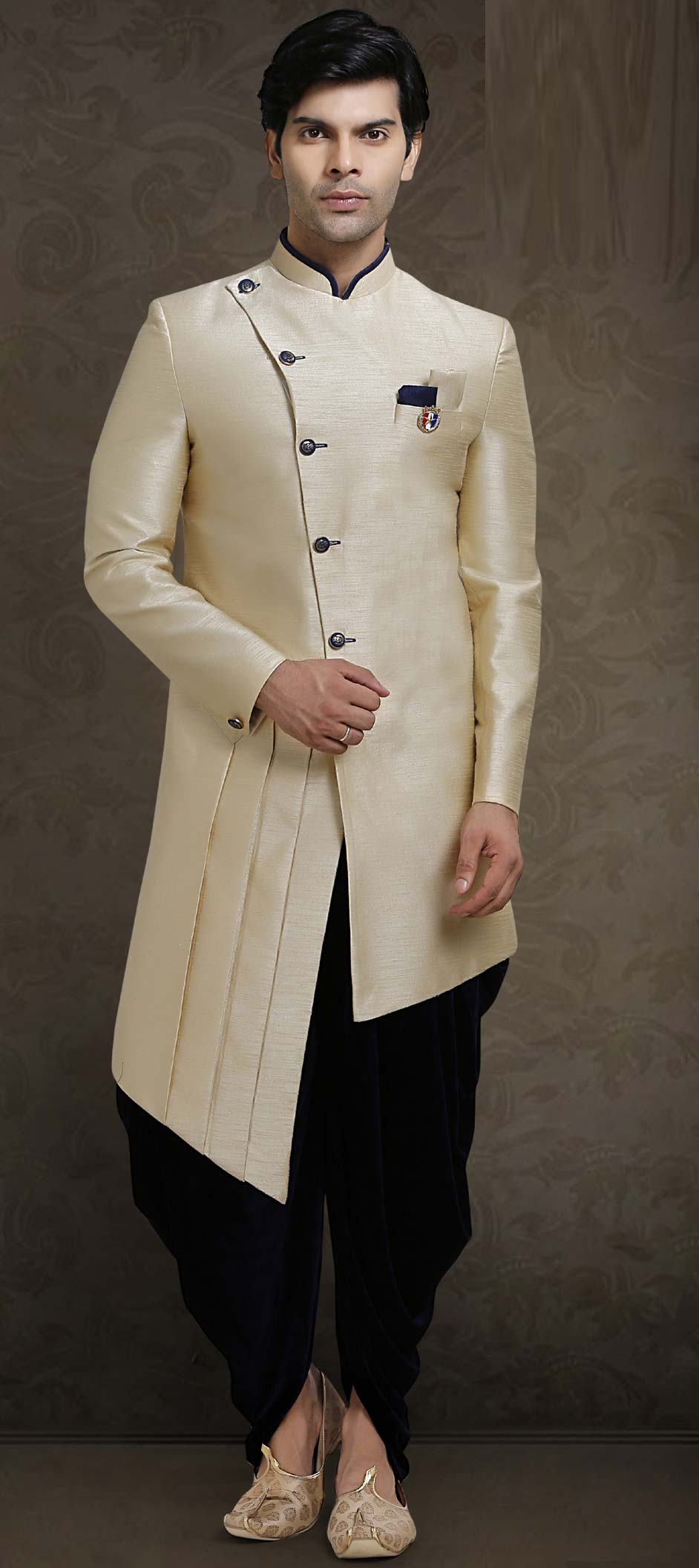 Beige and Brown color IndoWestern Dress in Art Silk fabric with Broches work
