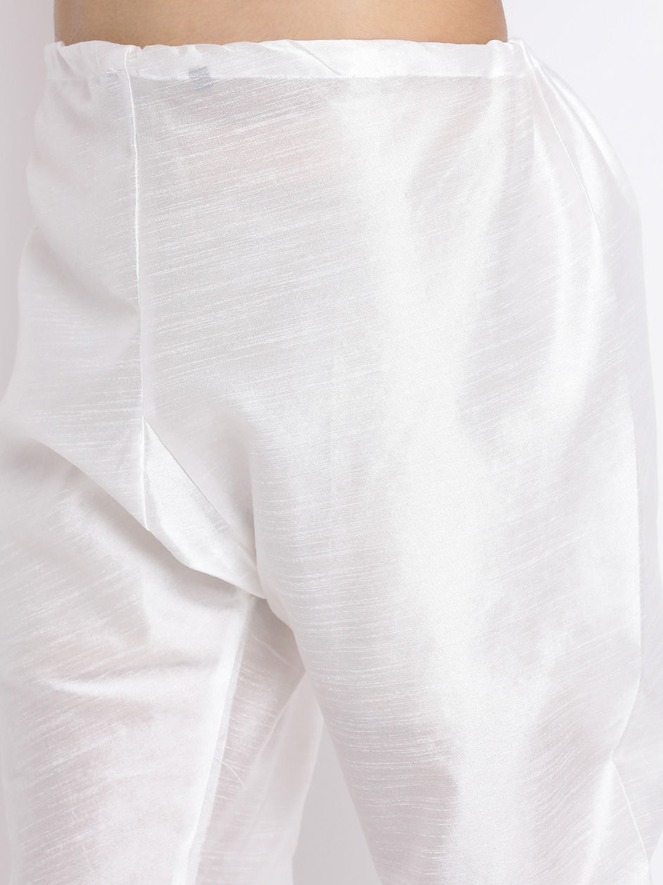 Black and Grey, White and Off White color IndoWestern Dress in Art Silk, Blended fabric with Thread work