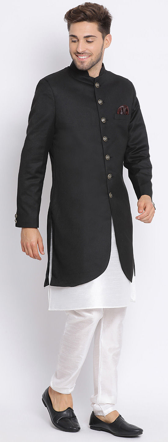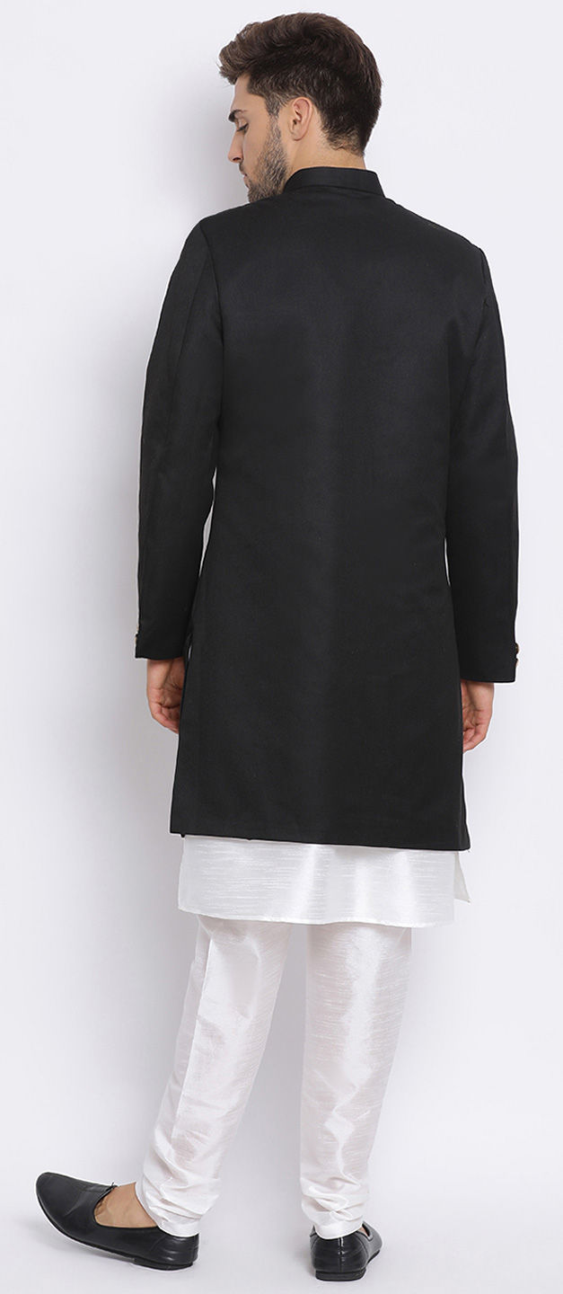 Black and Grey, White and Off White color IndoWestern Dress in Art Silk, Blended fabric with Thread work