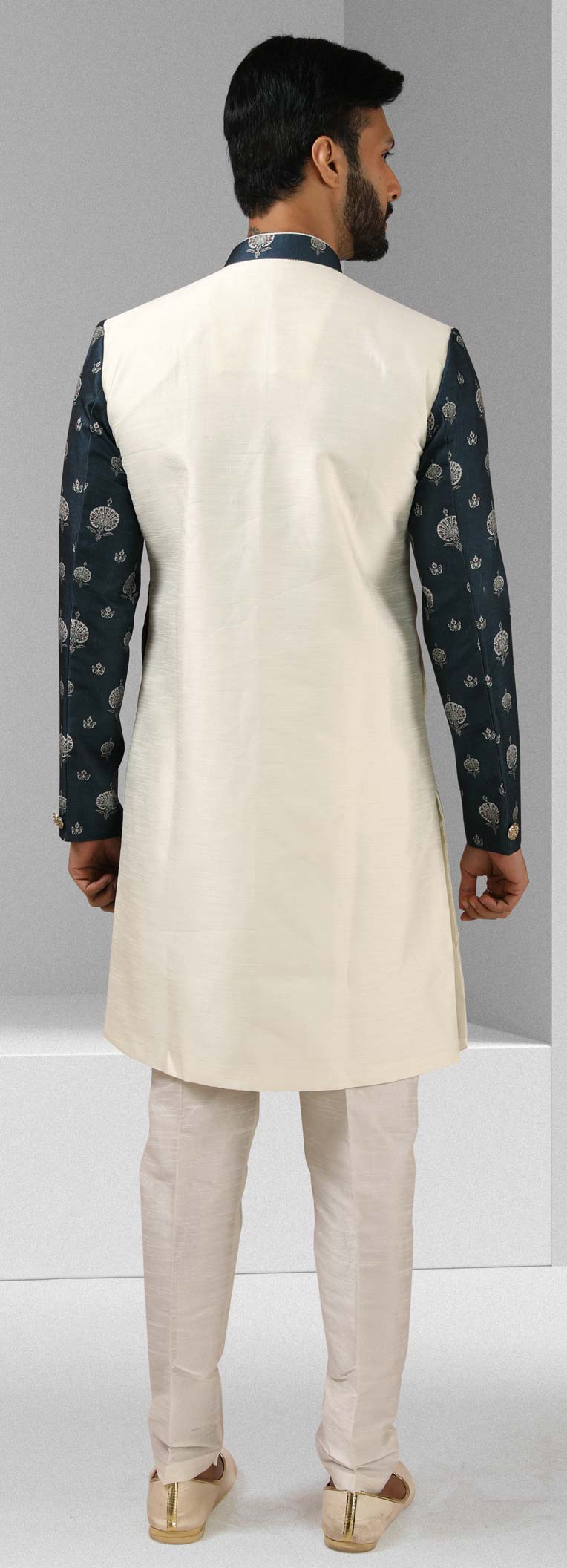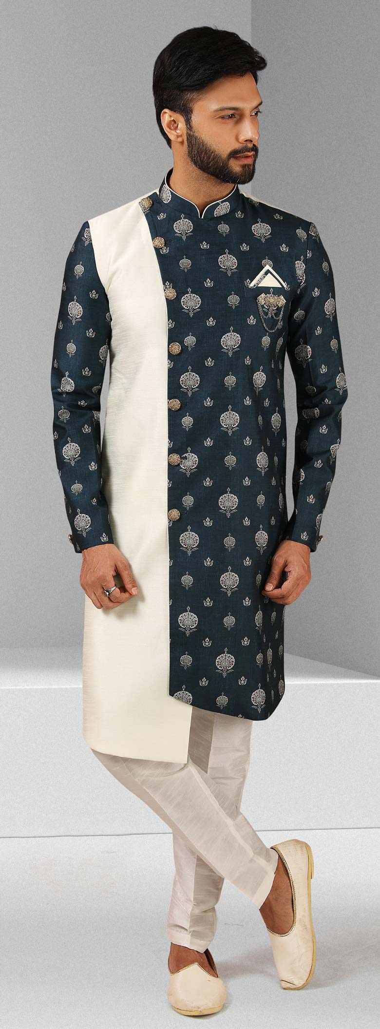 Beige and Brown, Blue color IndoWestern Dress in Art Silk fabric with Printed work
