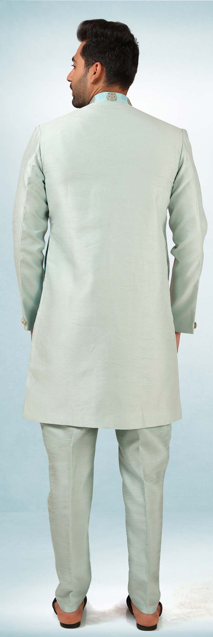 Green color IndoWestern Dress in Art Silk fabric with Printed work
