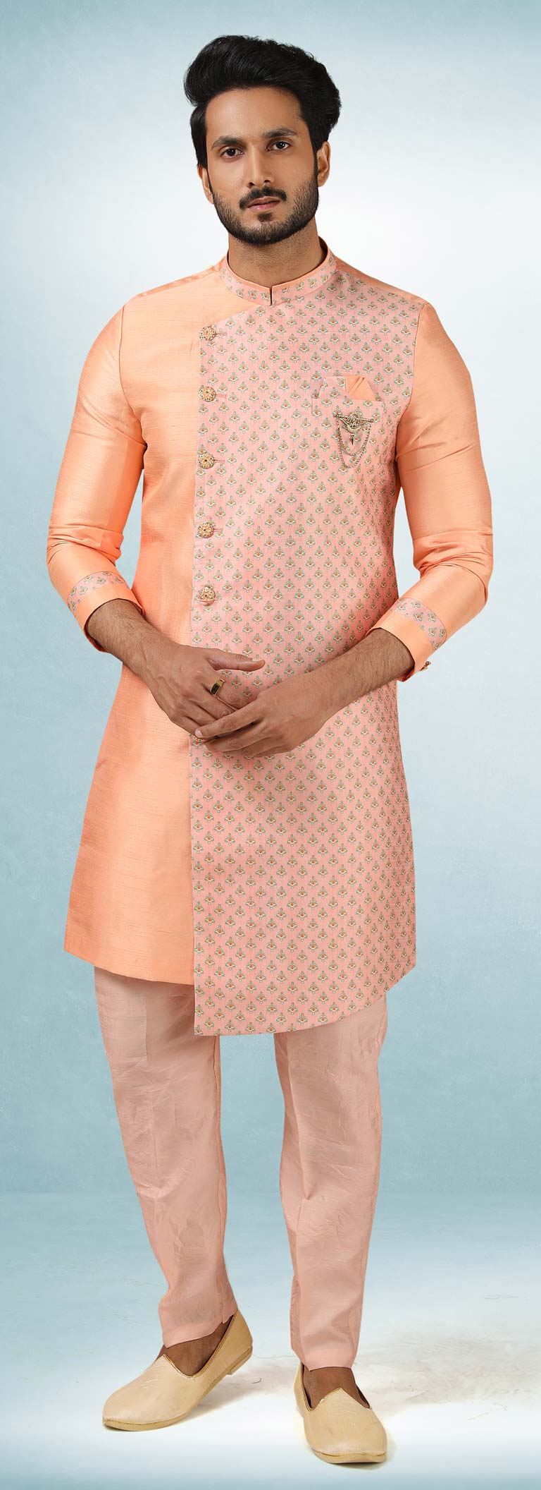 Pink and Majenta color IndoWestern Dress in Art Silk fabric with Printed work