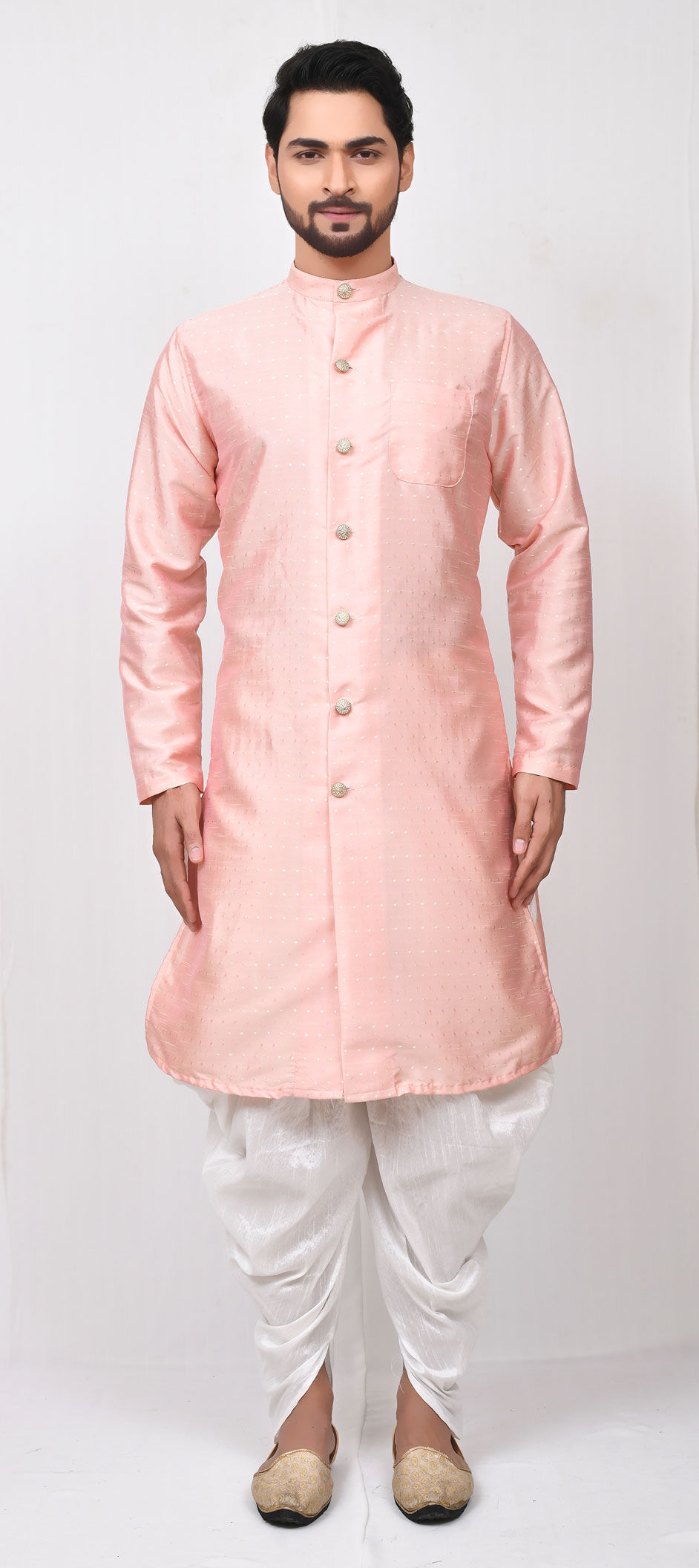 Pink and Majenta color IndoWestern Dress in Art Silk fabric with Thread work