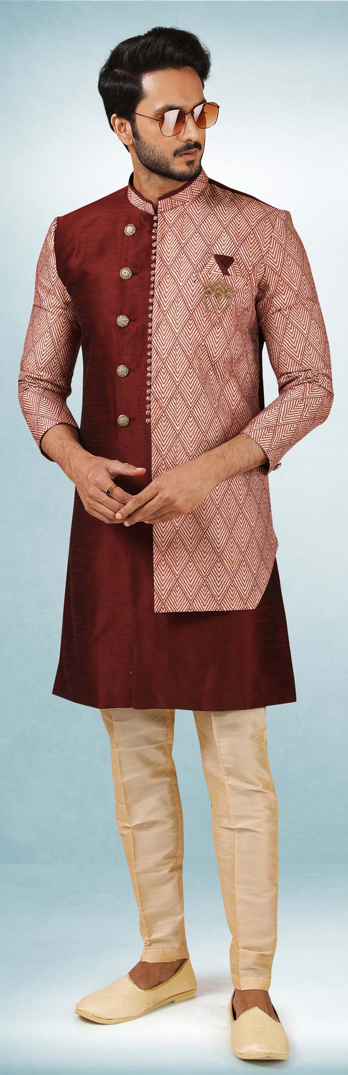 Art Silk IndoWestern Dress in Pink and Majenta with Printed work